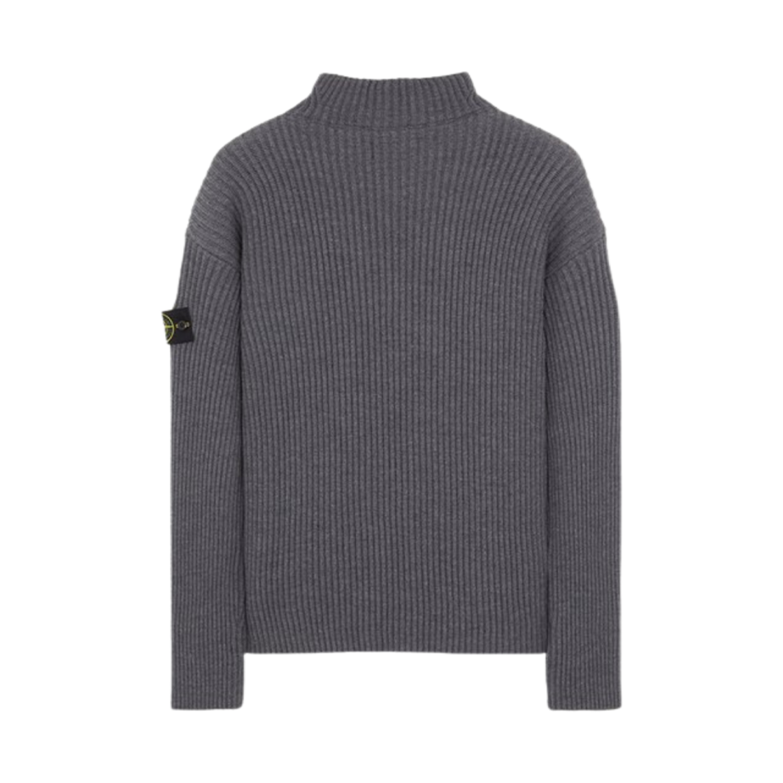 Stone Island 516C2 Full-Rib Wool Half Zip Up Knit Dark Grey Melange - 23FW