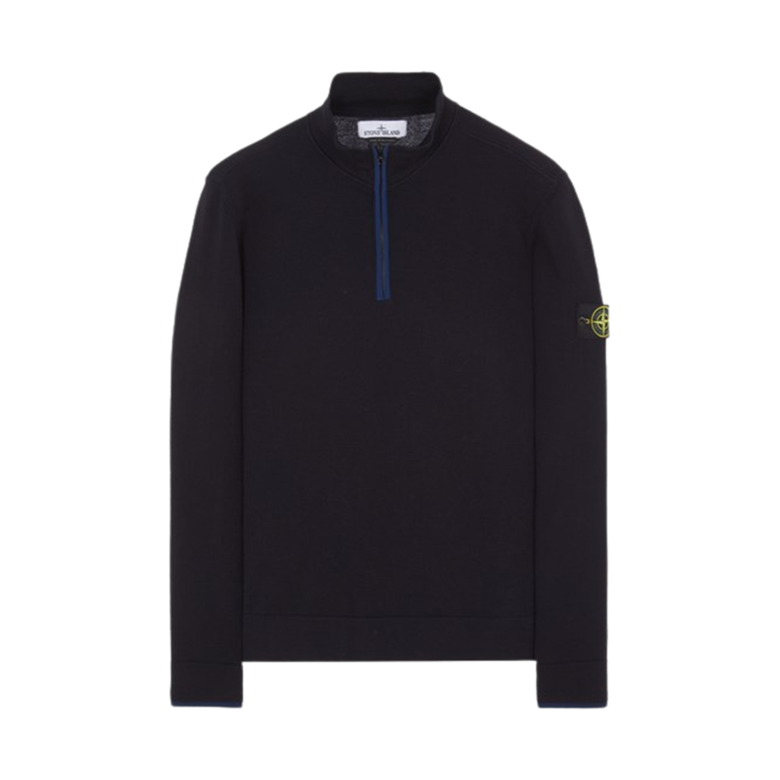 스톤 아일랜드 521A1 스트레치 울 하프 집업 니트 네이비 블루 - 23FW