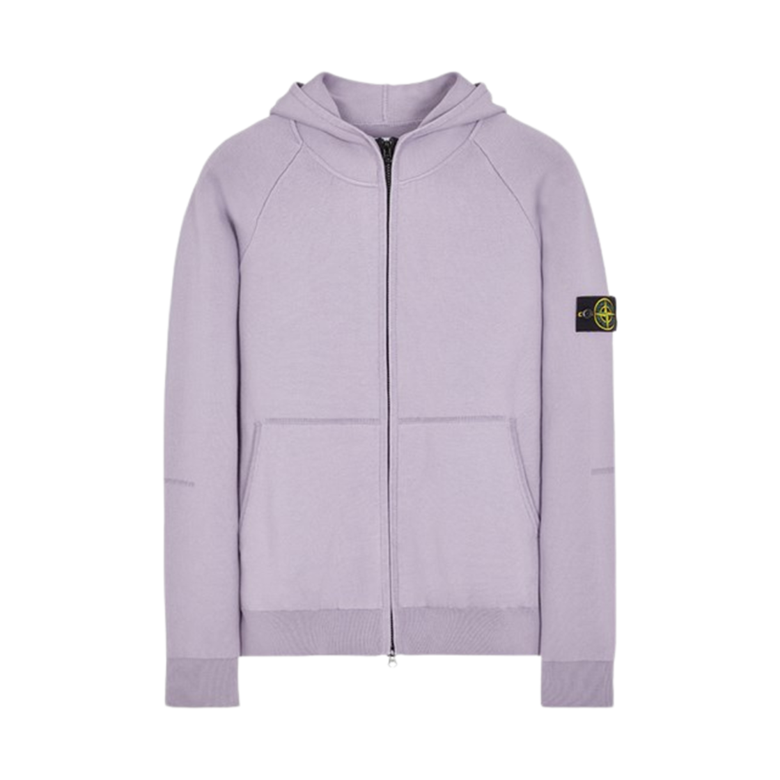 스톤 아일랜드 563A6 더블페이스 소프트 코튼 얀 후드 가디건 니트 라벤더 - 23FW