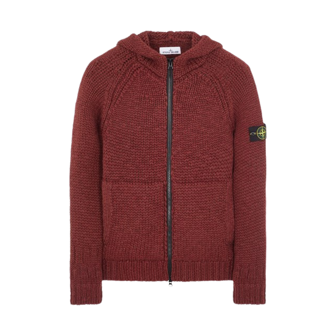 Stone Island 544D4 Handmade Feel Hooded Knit Cardigan Chestnut Brown - 23FW