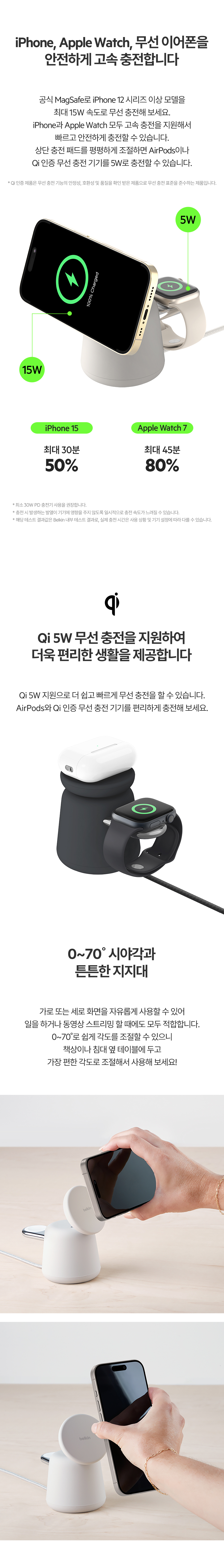 벨킨 부스트업 프로 2in1 맥세이프 충전기 15W 무선 충전 스탠드 WIZ020bt 차콜