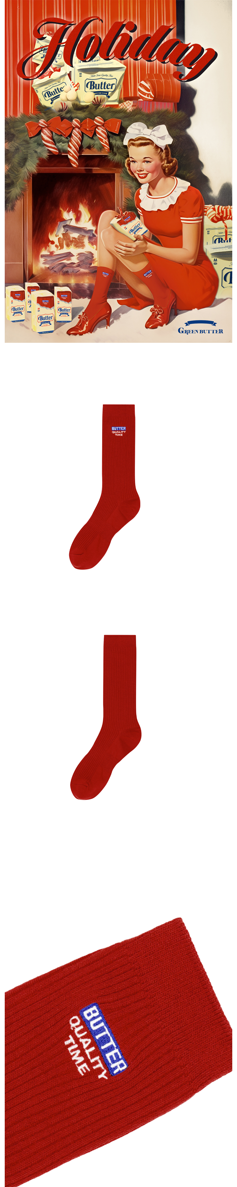 - 긴 기장감의 면스판 삭스- 상단에 얇은 밴딩을 넣어 흘러내리지 않게 제작- 발 바닥 아치부분의 조직을 더 촘촘하게 처리- 그린버터 로고 자수- 내추럴한 컬러