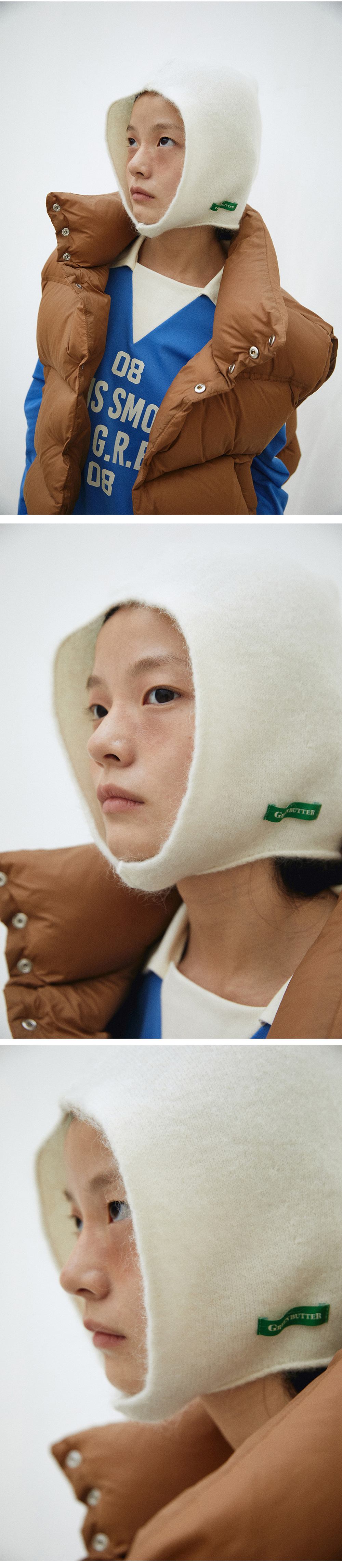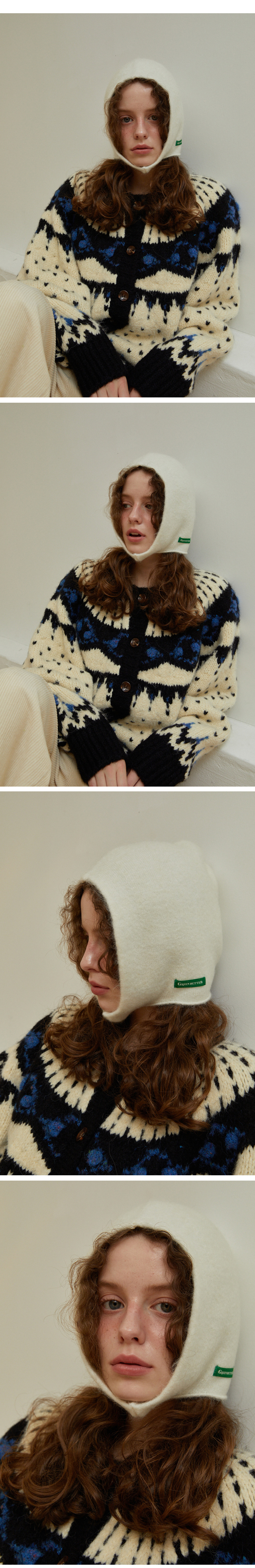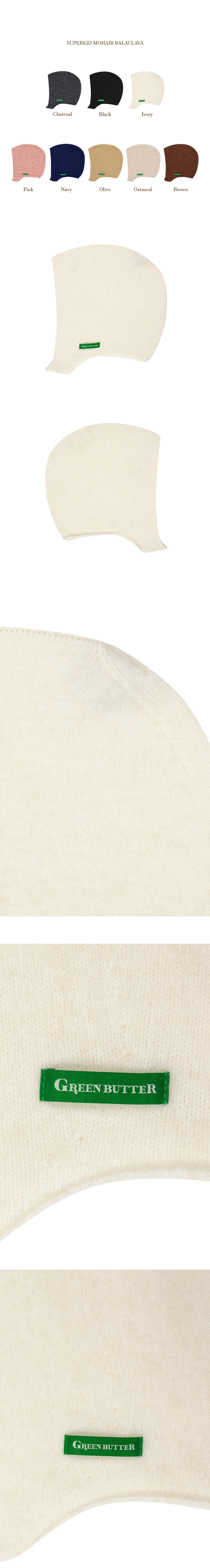 슈퍼키드모헤어33%, 울33% 함량으로 보풀과, 뭉침현상을 최소화했고 구김이 잘 가지 않으며 포근하면서 가볍고, 보온성이 뛰어난 바라클라바입니다.슈퍼키드모헤어 특유의 기장감이 느껴지는 기모효과와 컬감이 특징으로 베이직한 디자인에 그린색라벨을 포인트로 부착했습니다.스판함유로 피팅시 편안하고 텐션을 유지해주며 턱 끝을 완전히 감싸는 실루엣으로 광대를 가려주며 얼굴을 감싸안아얼굴이 작아보이는 핏으로 완성한 바라클라바입니다.