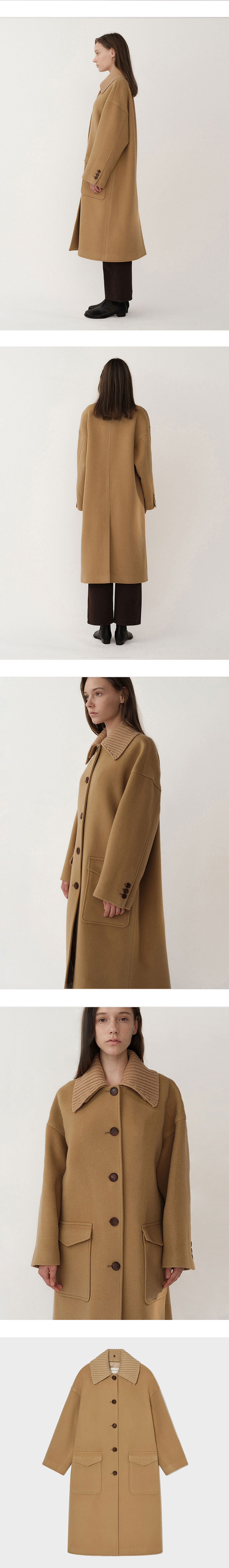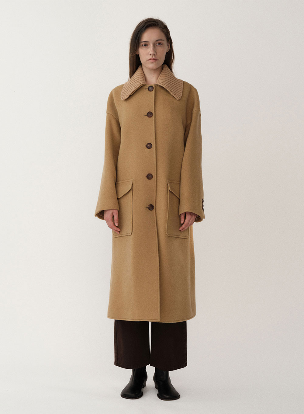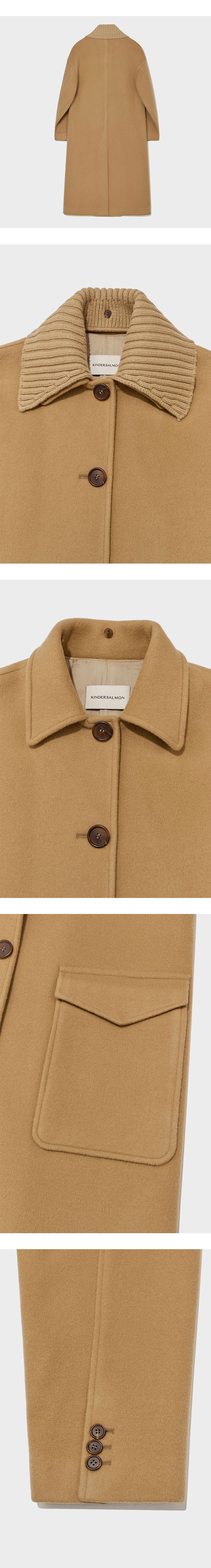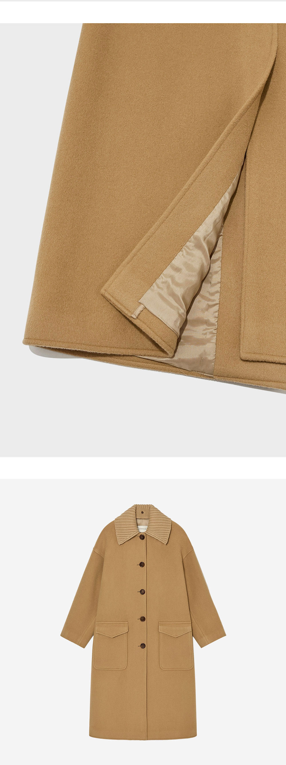 버튼으로 탈부착이 가능한 톤온톤의 오버사이즈 니트카라와 함께 아웃포켓이 돋보이는 싱글 코트입니다.샌드컬러에 마블링 디테일의 소뿔단추를 매치하여 러블리한 스타일이 매력적입니다. 울 100 소재를 사용하여 보온성이 우수하여 한겨울에도 다양한 이너웨어와 함께 연출이 가능합니다.