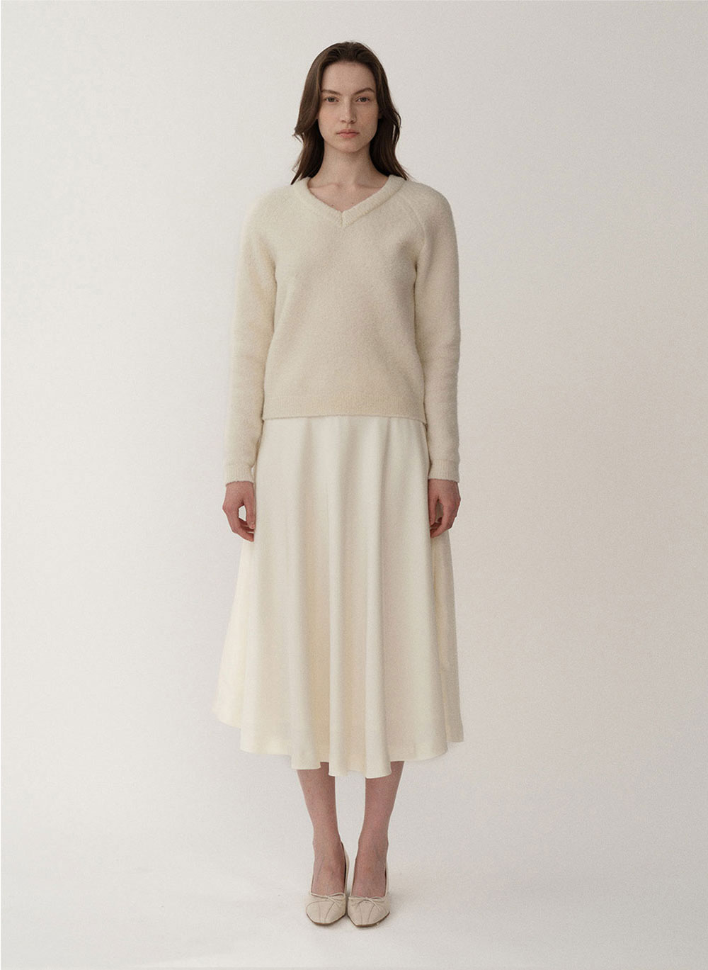 실키한 소재로 은은한 광택감이 돋보이는 미디기장의 플레어 스커트입니다. 밑단까지 풍성하면서 일정한 텀의 플레어가 페미닌한 무드를 연출해주며, 다양한 상의에 레이어드하여 스타일링하기에 좋은 스페어 아이템입니다.
