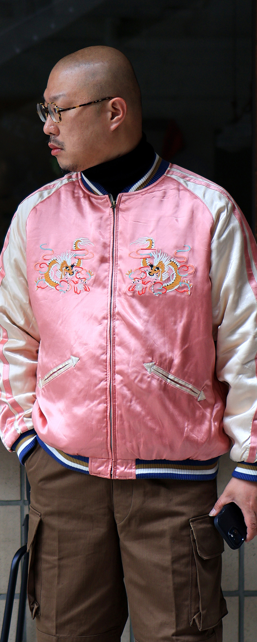 Houston Japan 51289 Rayon Souvenir Jacket (Maiko) - Pink 수베니어 자켓입니다. 안감과 겉감 모두 레이온 세틴으로 제작되어 특유의 부드러운 감촉과 광택감이 특징입니다. 전통적인 자수가 특징인 아이템으로, 프론트의 양측으로 용의 자수가 후면부에는 큼지막한 사이즈의 일본의 마이코 자수가 디자인 되어 있습니다. 카라와 소매, 밑단의 배색감이 포인트입니다. 착용시 XL 사이즈가 일반적인 100 사이즈, XXL 사이즈가 105 사이즈 정도입니다.