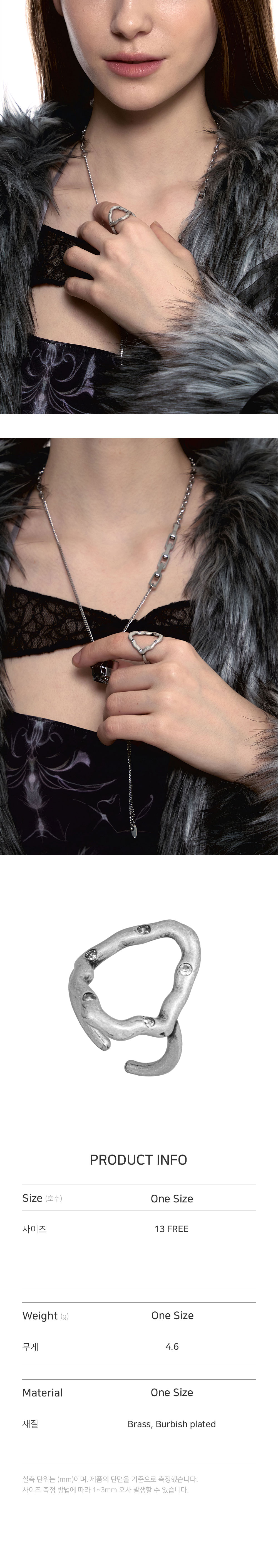 • 크기: 13호 FREE / 가로(W) 2CM X 세로(H) 2CM • 무게(WEIGHT): 4.6G • 제조국: 대한민국 • 부드러운 천으로 닦아 관리 • 소재: 신주(BRASS) 100% 버니쉬도금(BURNISH PLATED)