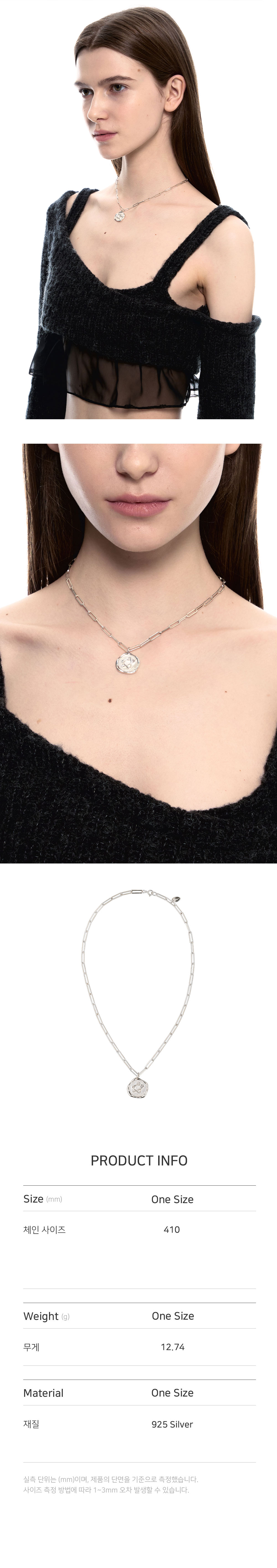 • 길이: 최대 41CM 펜던트 크기: 가로(W) 2CM X 세로(H) 2CM • 무게(WEIGHT): 12.74G • 센티멍 왁스 실링 모티브 펜던트 • 925 실버 • 제조국: 대한민국 • 부드러운 천으로 닦아 관리 • 소재: 925실버(925SILVER) 100%