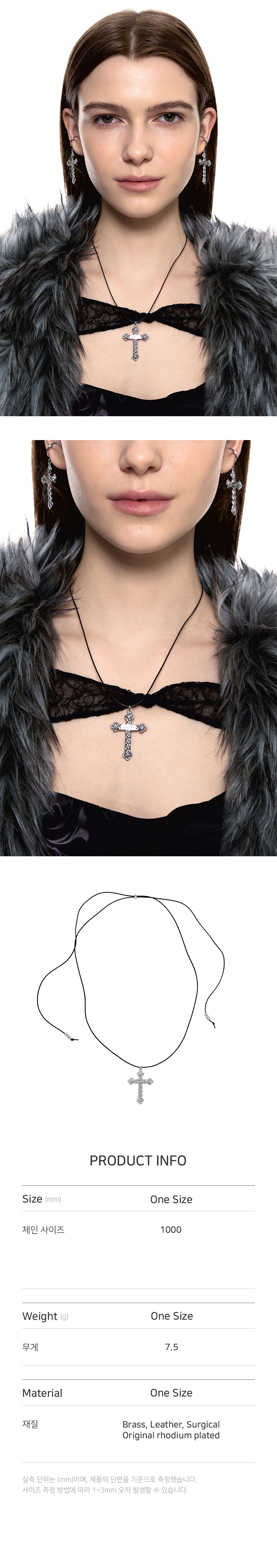 센티멍 넘버 475 매듭 십자가 레더 네크리스 실버