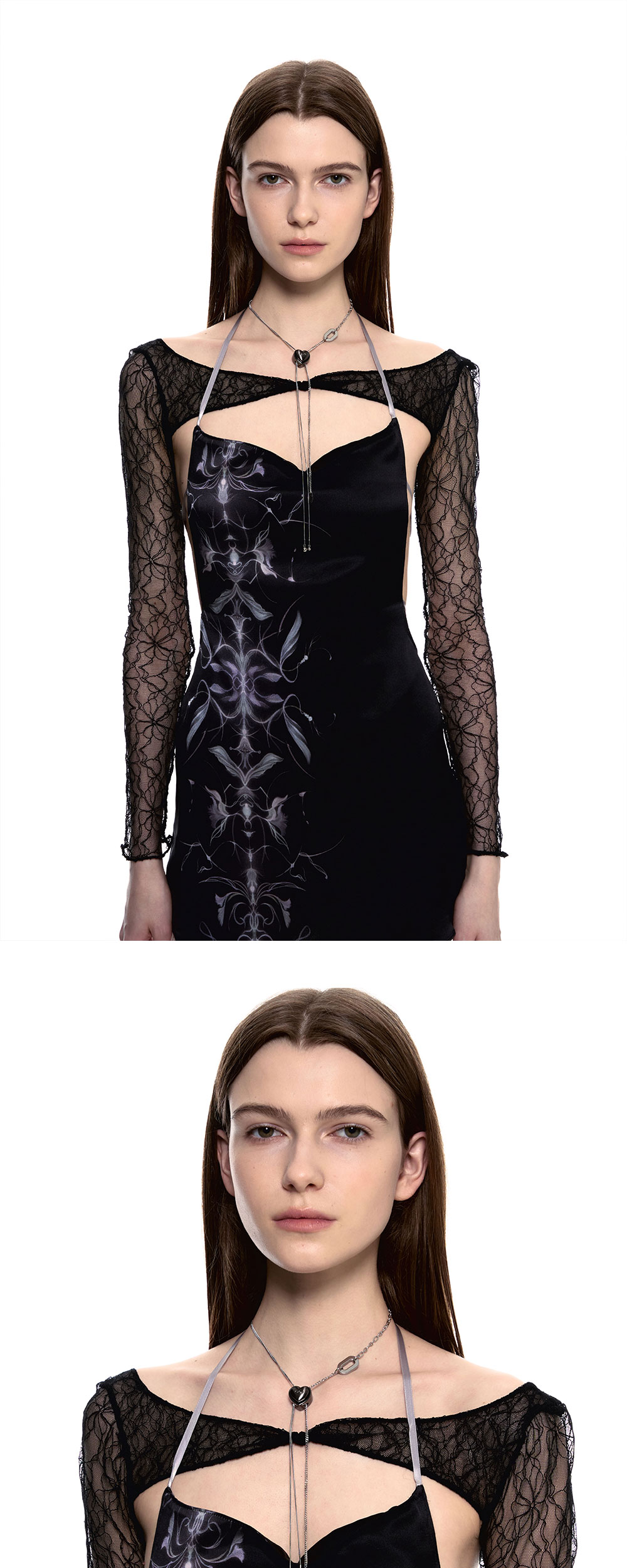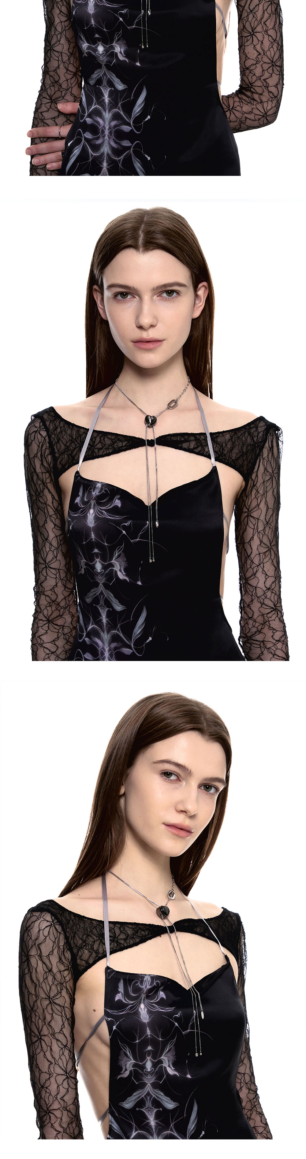 Sentiments No.480 Heart Code Lock Chain Necklace Black