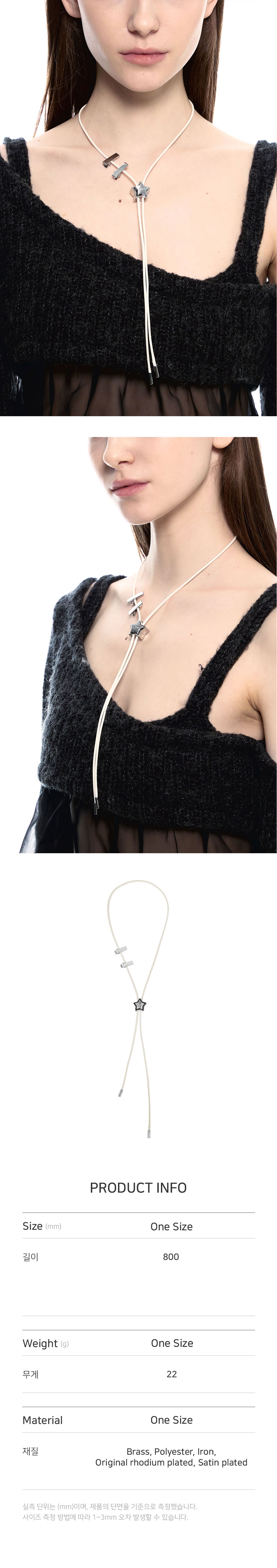 • 길이: 최대 80CM / 펜던트 크기 가로(W) 1.5CM X 세로(H) 1.5CM • 무게(WEIGHT): 20G • 별 코드락 슬라이드 장식 • 미니 집게핀 세트 • 자유로운 길이조절 가능 • 제조국: 대한민국 • 부드러운 천으로 닦아 관리 • 소재: 신주(BRASS) 70% 폴리에스터(POLYESTER) 20% 철(IRON) 10% OR두께도금(ORIGINAL RHODIUM PLATED) 사틴도금(SATIN PLATED)