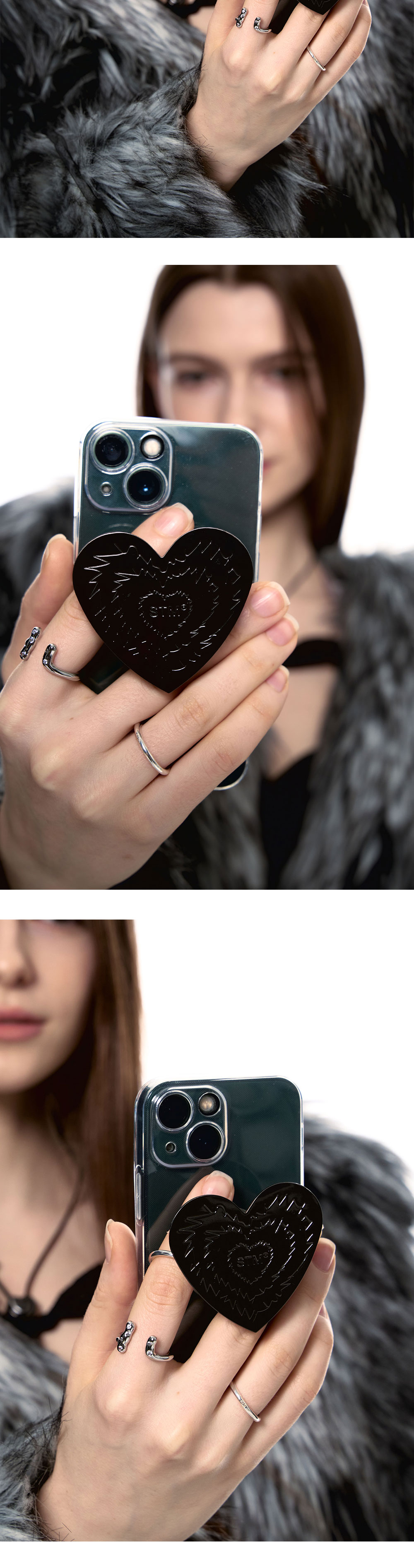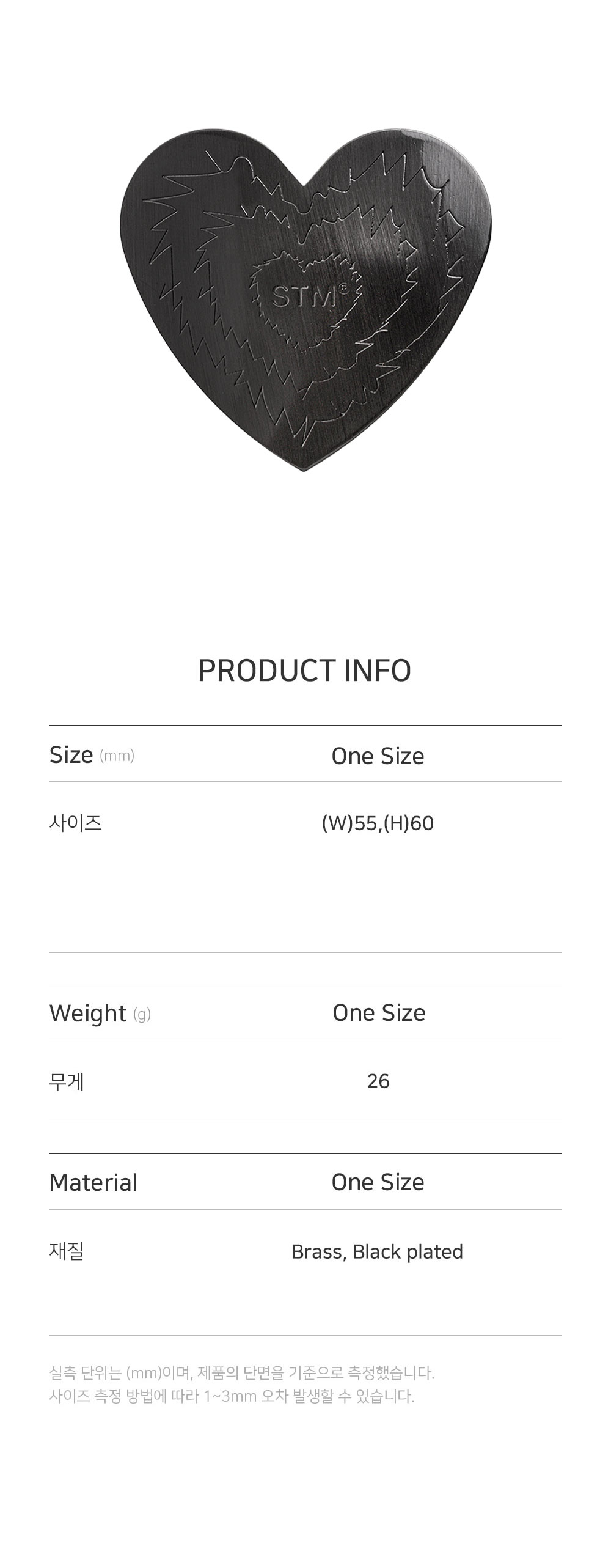 • 크기: 가로(W) 6CM X 세로(H) 5.5CM • 무게(WEIGHT): 26G • 휴대폰 그립 • 제조국: 대한민국 • 부드러운 천으로 닦아 관리 소재: 신주(BRASS) 100% 블랙두께도금(BLACK PLATED)
