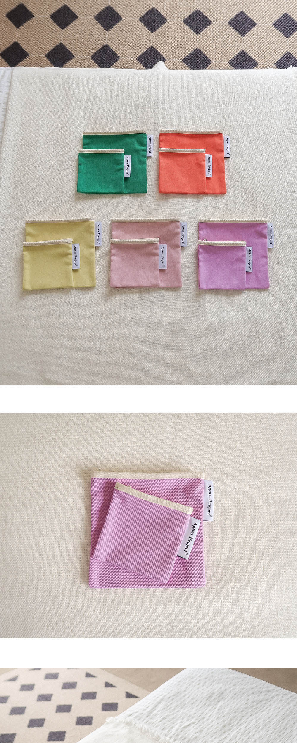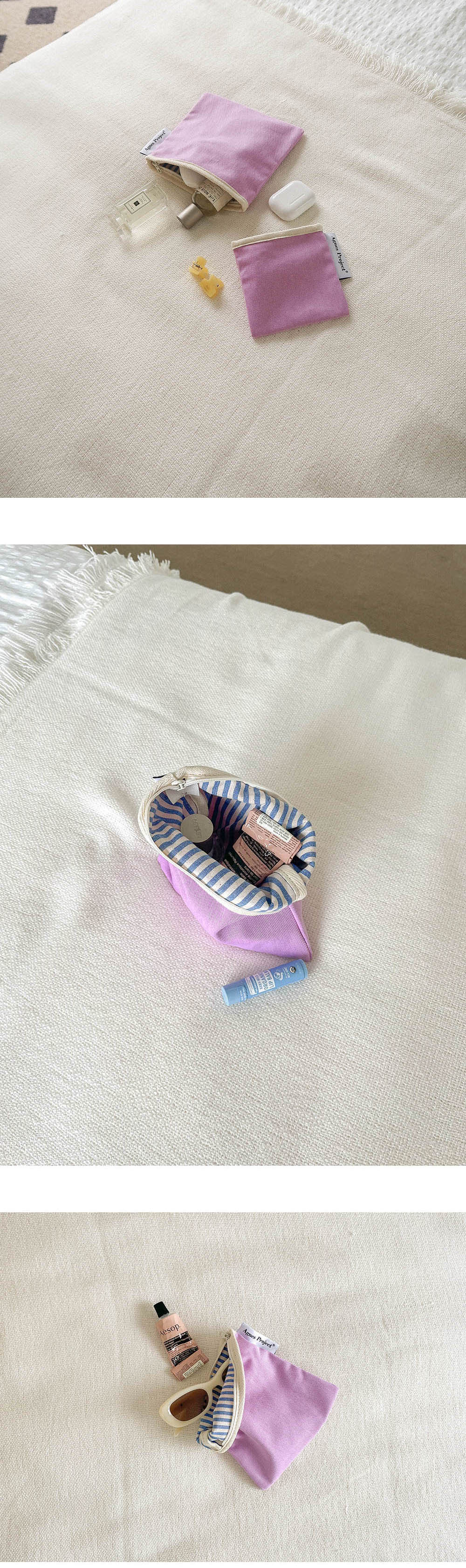 Square Color Pouch_Lavender(M) 안정감을 주는 정사각형 형태에 상단 지퍼 여닫이로 손쉬운 사용이 가능하고 수납하는 물건에 따라 자연스럽게 형태가 잡히는 파우치입니다. 겉면은 면 100% 탄탄한 트윌 원단에 워싱을 가공하였고, 안감은 린넨 스트라이프 원단을 사용하여 전체적으로 비비드하면서도 내추럴한 빈티지 무드를 담았습니다. 전체 마감은 면 100% 바이어스를 덧대어 튼튼하게 제작되었습니다. 사이즈는 두가지로, Small (W)11.5 X (H)11.5cm - 무선이어폰, 립밤, 동전, 카드 등 작은 소지품을 보관하기 좋습니다. Medium (W)17 X (H)17cm - 화장품, 여성용품 등 중간정도 크기의 소지품을 보관하기 좋습니다.