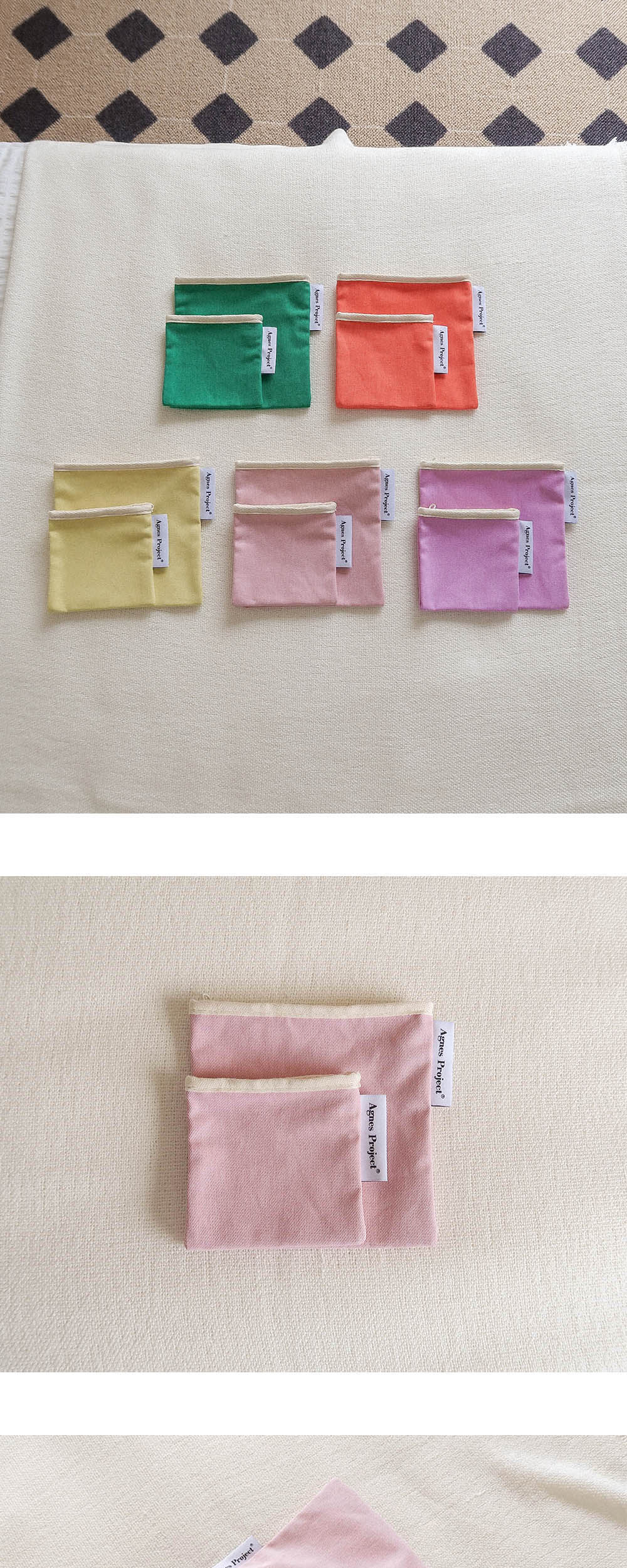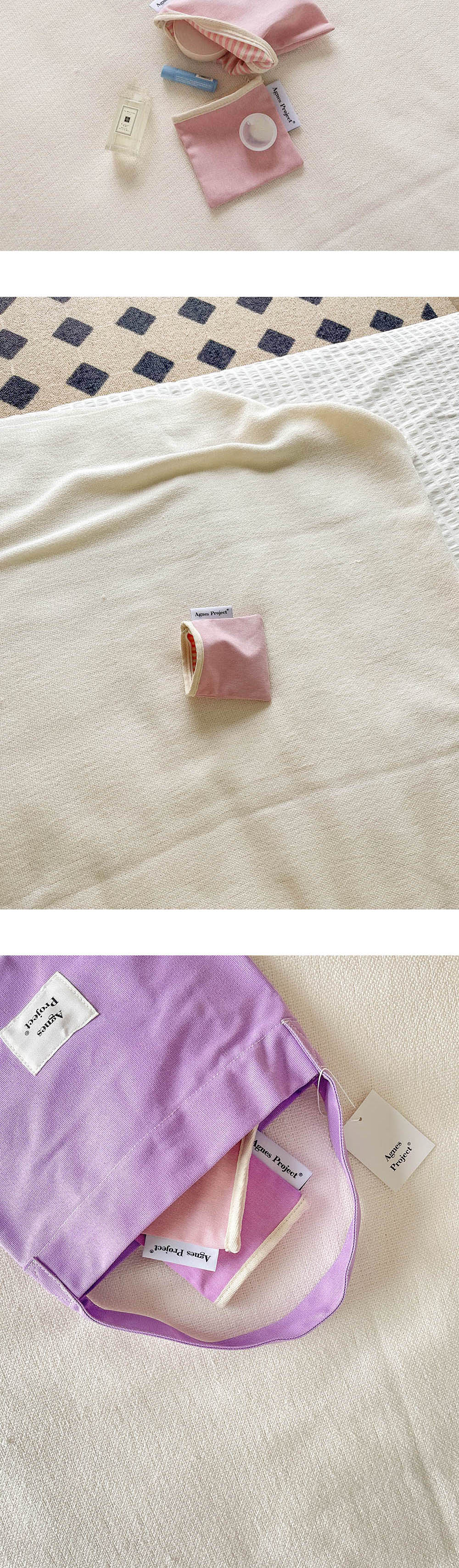 Square Color Pouch_Pink(S) 안정감을 주는 정사각형 형태에 상단 지퍼 여닫이로 손쉬운 사용이 가능하고 수납하는 물건에 따라 자연스럽게 형태가 잡히는 파우치입니다. 겉면은 면 100% 탄탄한 트윌 원단에 워싱을 가공하였고, 안감은 린넨 스트라이프 원단을 사용하여 전체적으로 비비드하면서도 내추럴한 빈티지 무드를 담았습니다. 전체 마감은 면 100% 바이어스를 덧대어 튼튼하게 제작되었습니다. 사이즈는 두가지로, Small (W)11.5 X (H)11.5cm - 무선이어폰, 립밤, 동전, 카드 등 작은 소지품을 보관하기 좋습니다. Medium (W)17 X (H)17cm - 화장품, 여성용품 등 중간정도 크기의 소지품을 보관하기 좋습니다.
