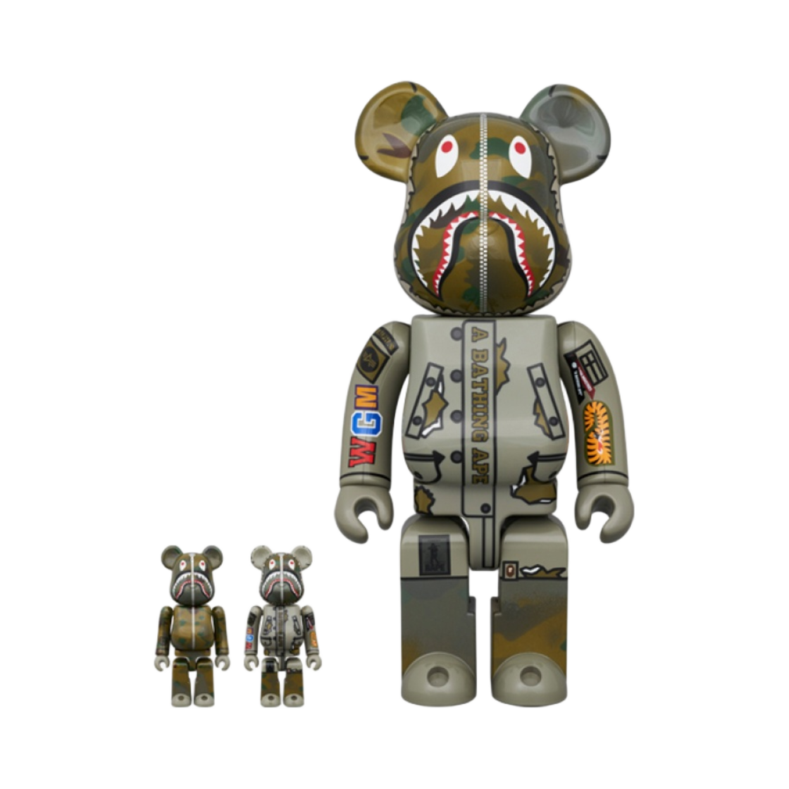베어브릭 x 베이프 x 알파 인더스트리 100% & 400% 세트 그린 카모
