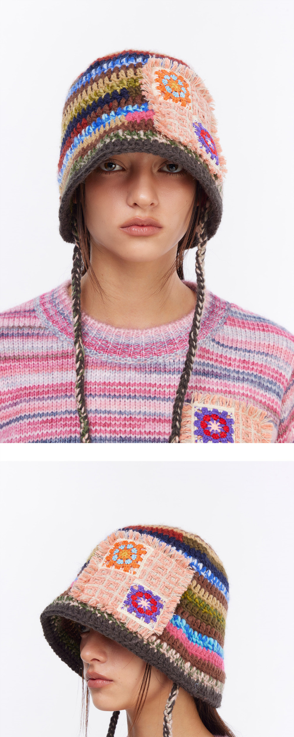 더그레이티스트 스트링 니트 버킷 햇 핑크