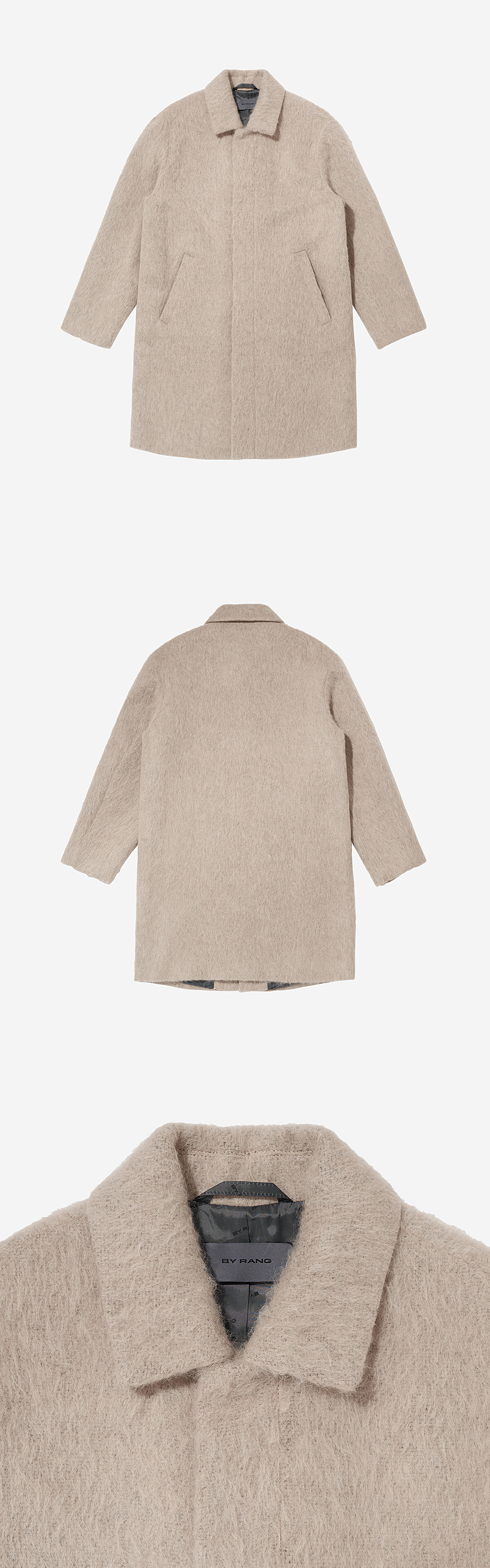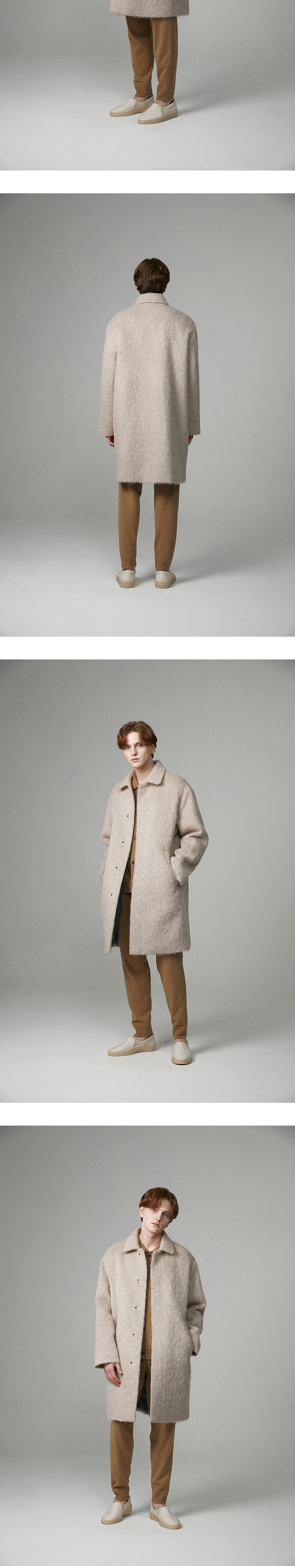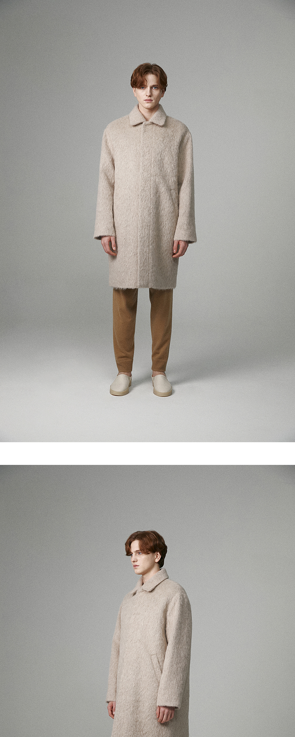 -Italian shaggy wool-alpaca blend -Comfortable drop silhouette -Logo snap button -MODEL : 185CM 72KG TOP - M BOTTOM - M TOP -M (~103), L (~108), XL (110~)