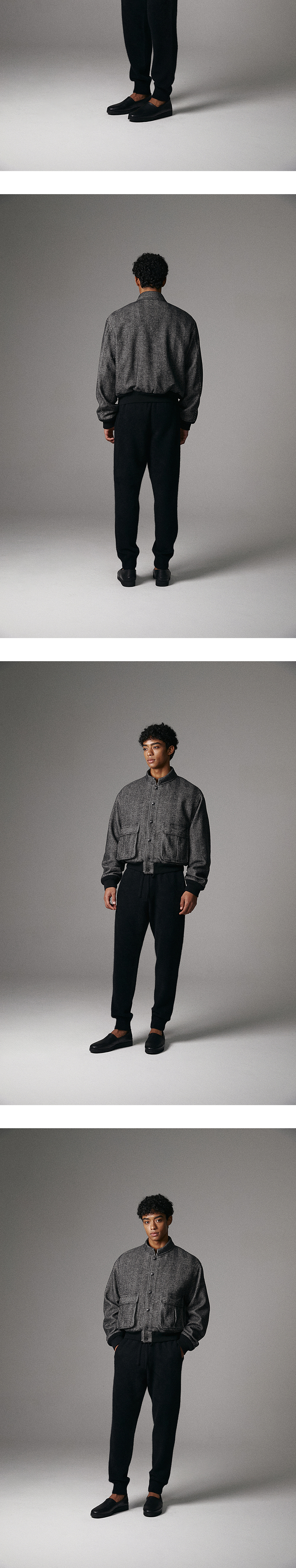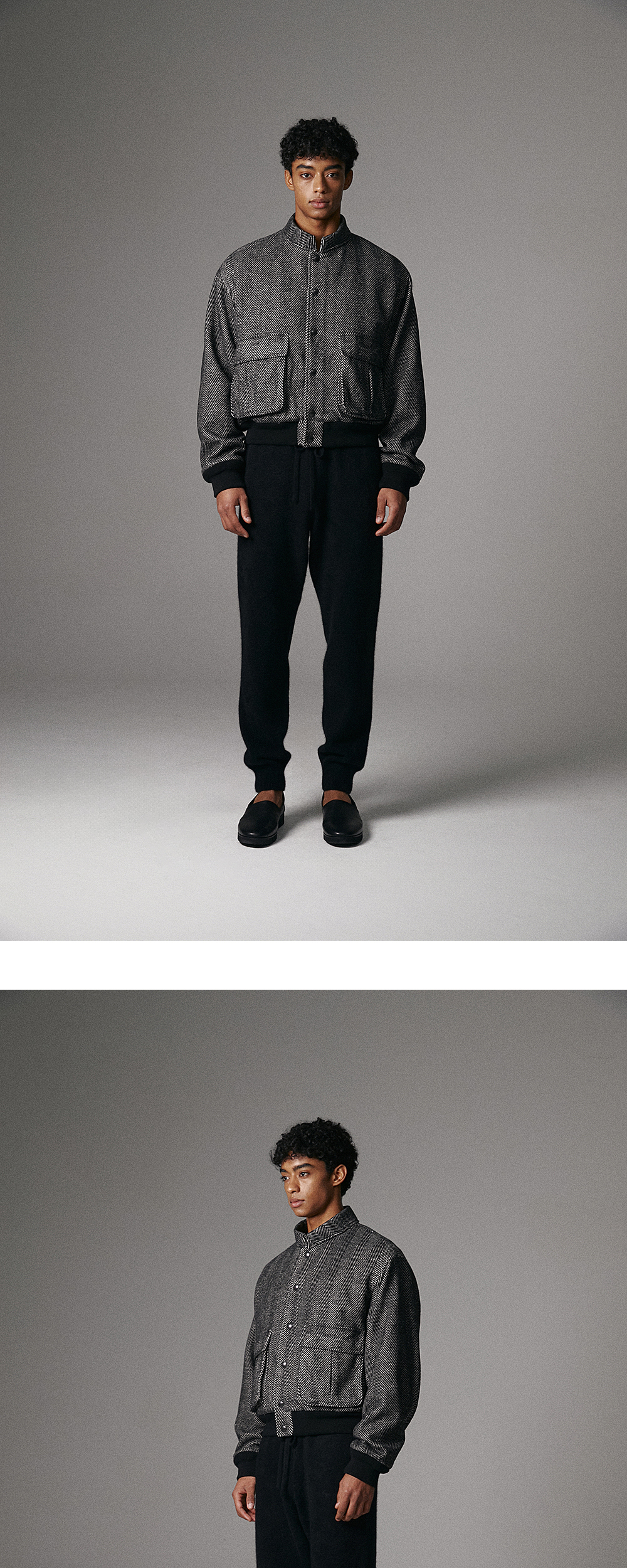 -Italian fabric -Stand collar -Logo Snap Button -Wool blend ribbing -MODEL : 187CM 77KG TOP - L BOTTOM - M TOP - S (~98), M (~103), L (~108)