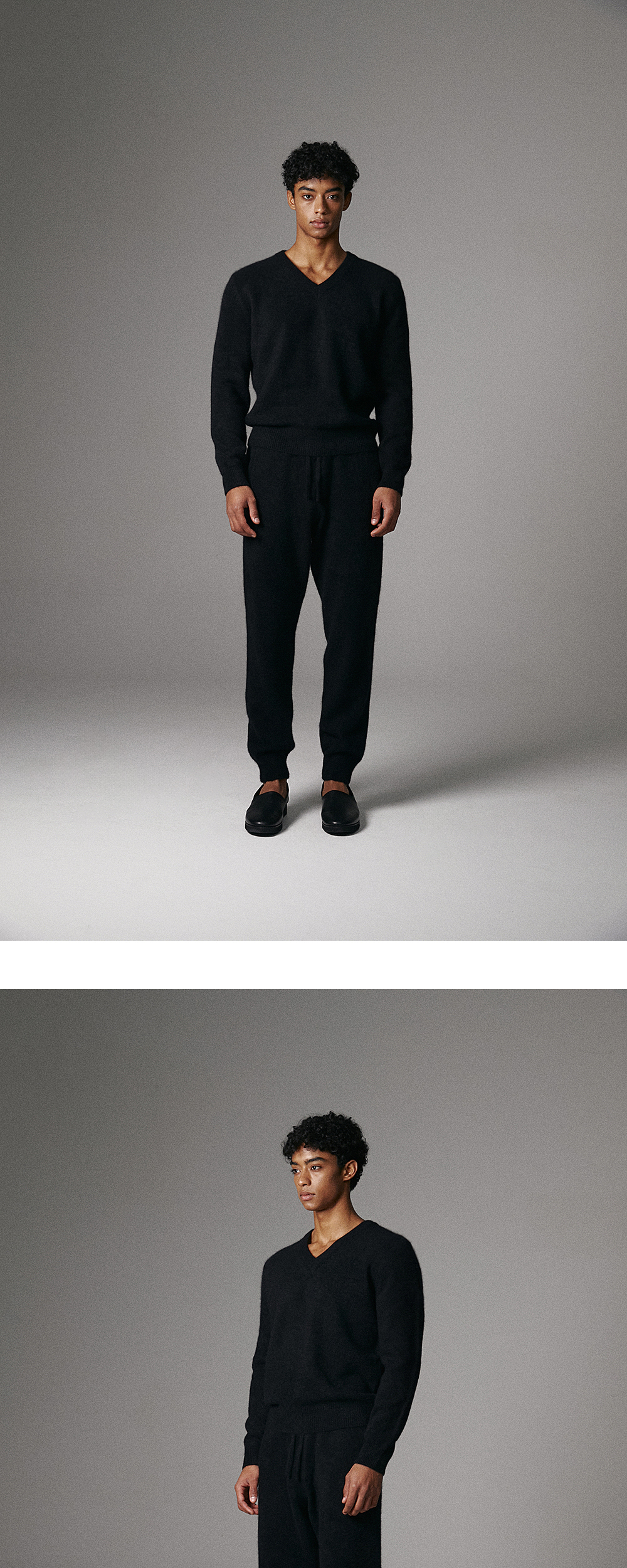 -V-neck -Logo embroidered -Racoon, fox, wool blend -Soft touch wool - MODEL : 187CM 77KG TOP - L BOTTOM - M - MODEL : 176CM 53KG TOP - S BOTTOM - XS ※ 원단 특성상 착용 시 털 빠짐이 발생하며 점차 감소하오니 마찰에 유의 바랍니다. TOP - S (95), M (100), L (105), XL (110)