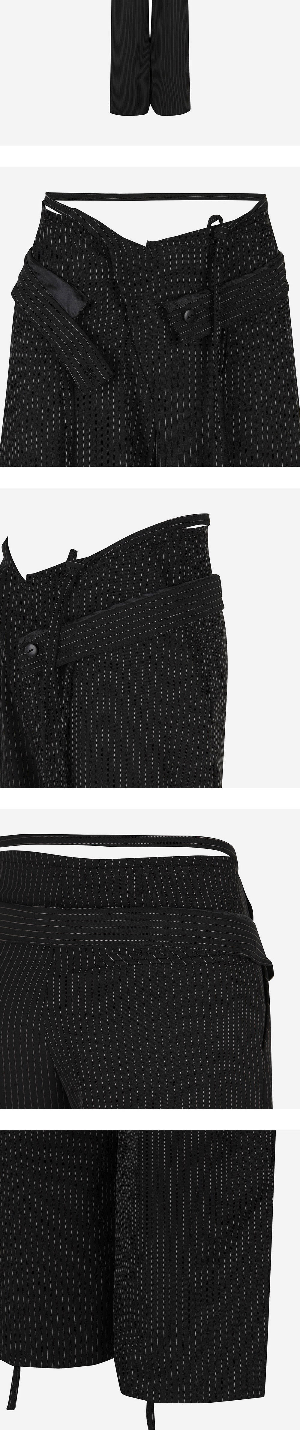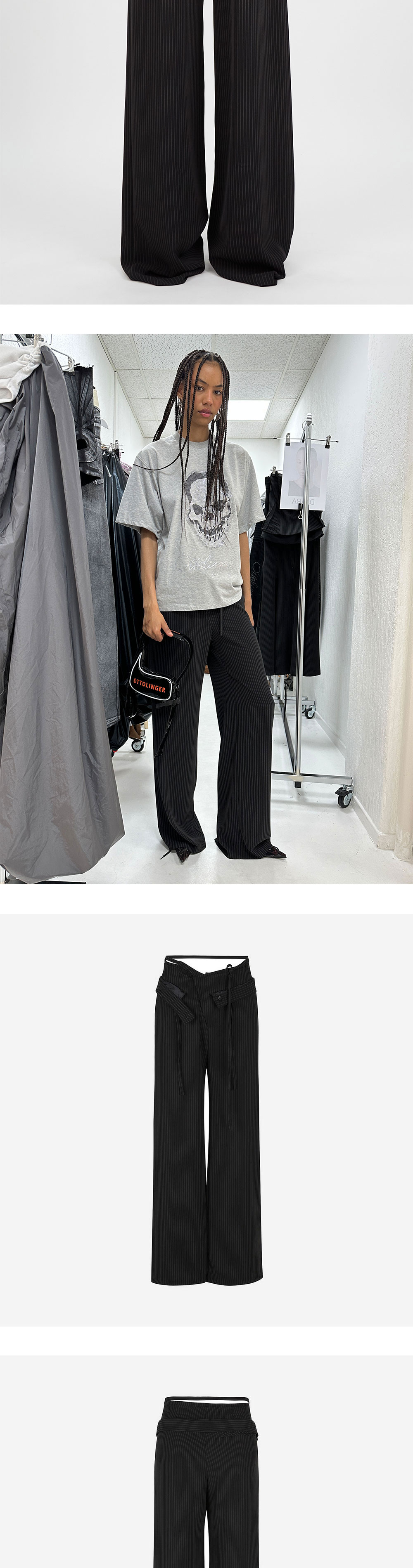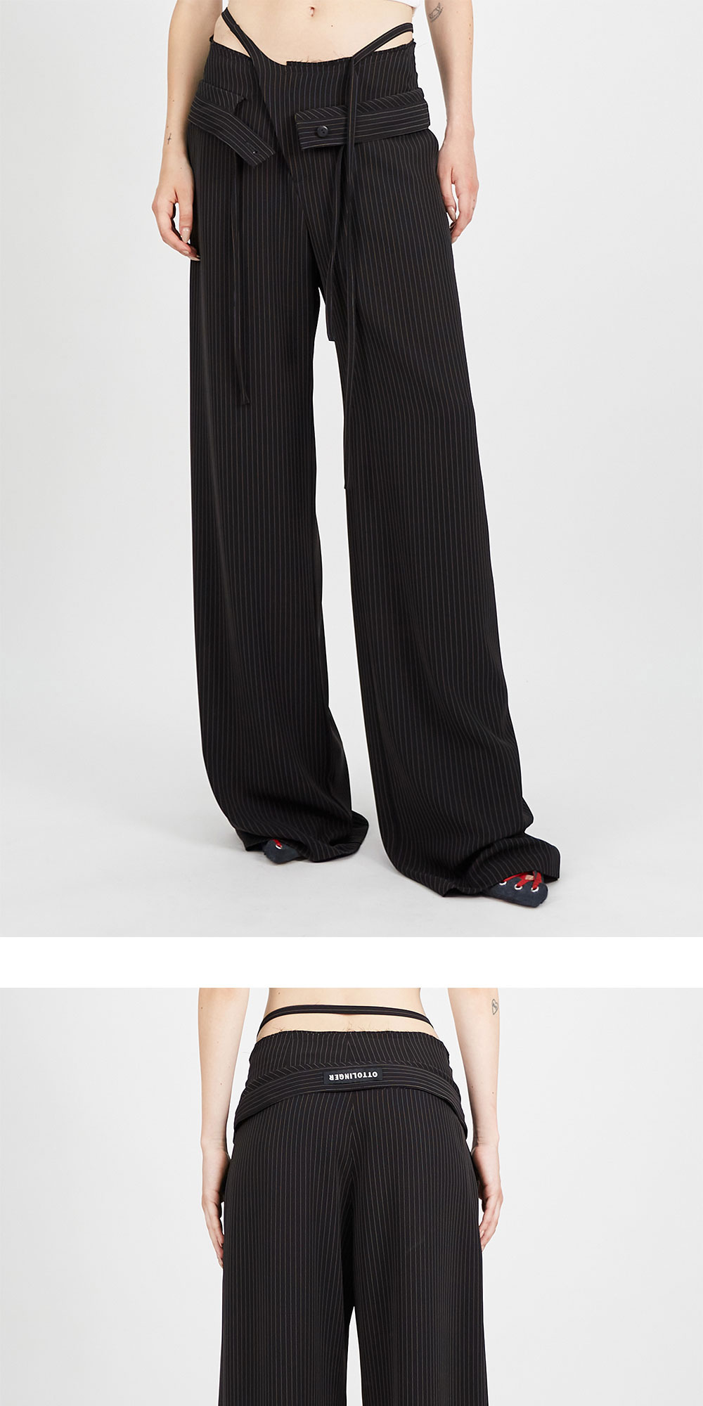 오토링거 우먼 더블 폴드 수트 트라우저 블랙 핀스트라이프