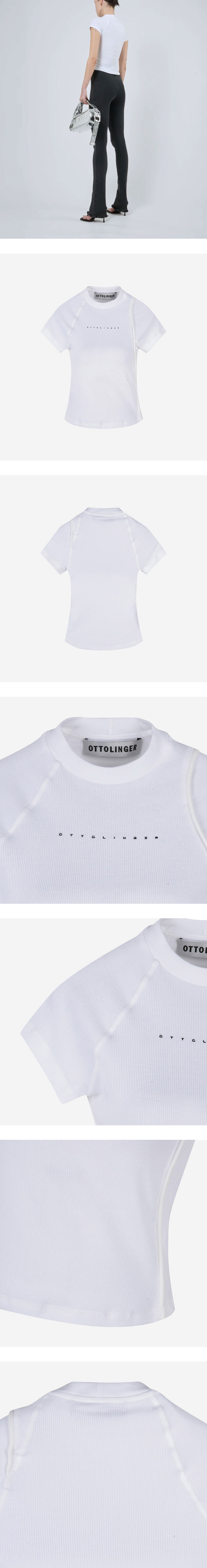 심플한 컬러에 더해진 패널 디테일, 전면의 로고가 특징인 오토링거의 우먼 디컨스트럭티드 티셔츠입니다. - 크루넥 골지 티셔츠 - 오가닉 코튼 혼방 소재 - 전면 로고 프린트 - 파이핑 디테일