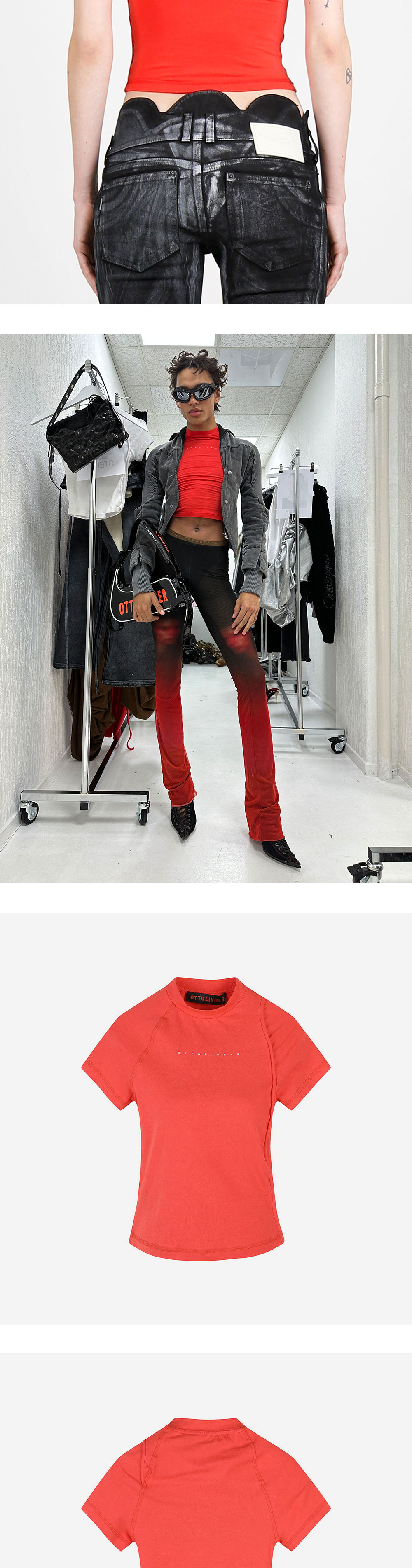 독특한 절개 라인이 돋보이는 오토링거의 디컨스트럭티드 티셔츠입니다. 강렬한 색감과 전면 가슴 부분의 로고 프린트가 특징입니다. - 크루넥 골지 티셔츠 - 오가닉 코튼 혼방 소재 - 전면 로고 프린트 - 파이핑 디테일