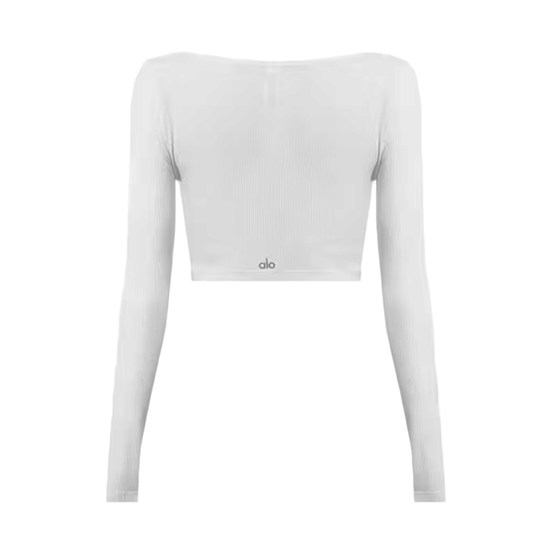 (W) Alo Yoga Ribbed Cropped Whisper Cardigan White