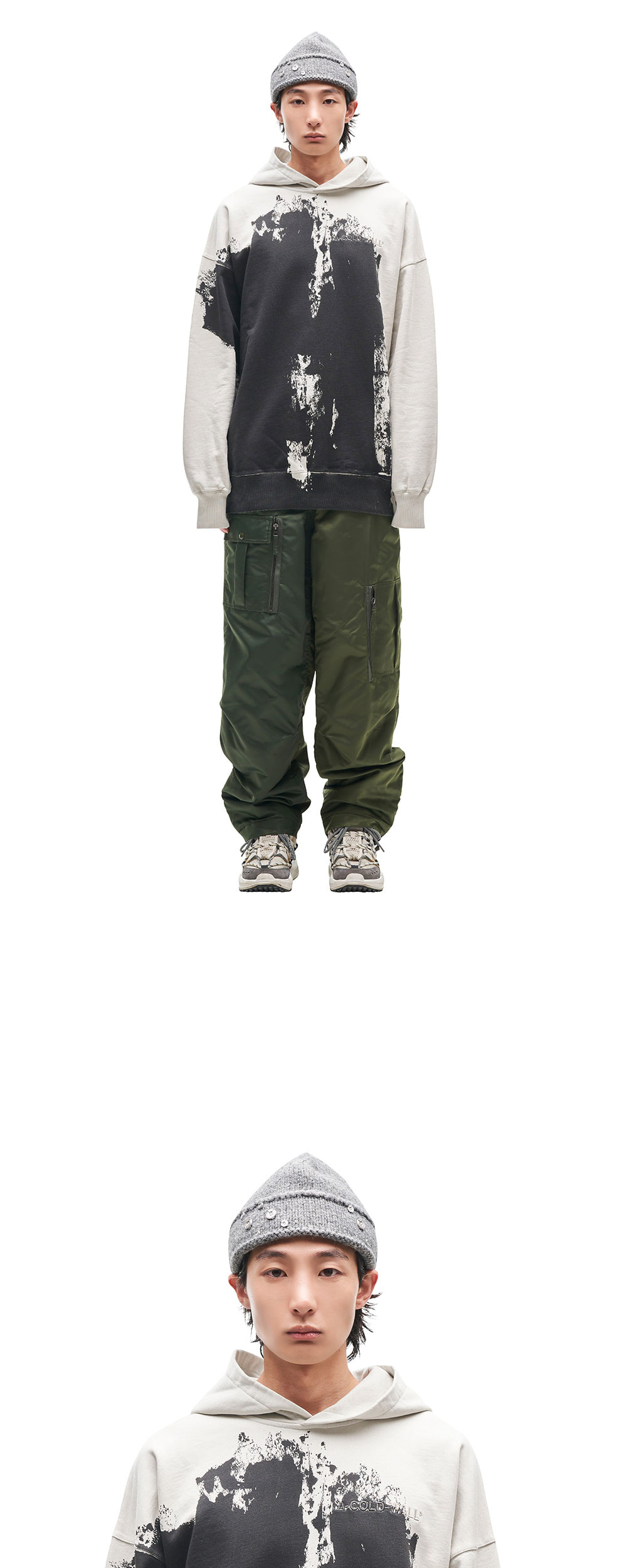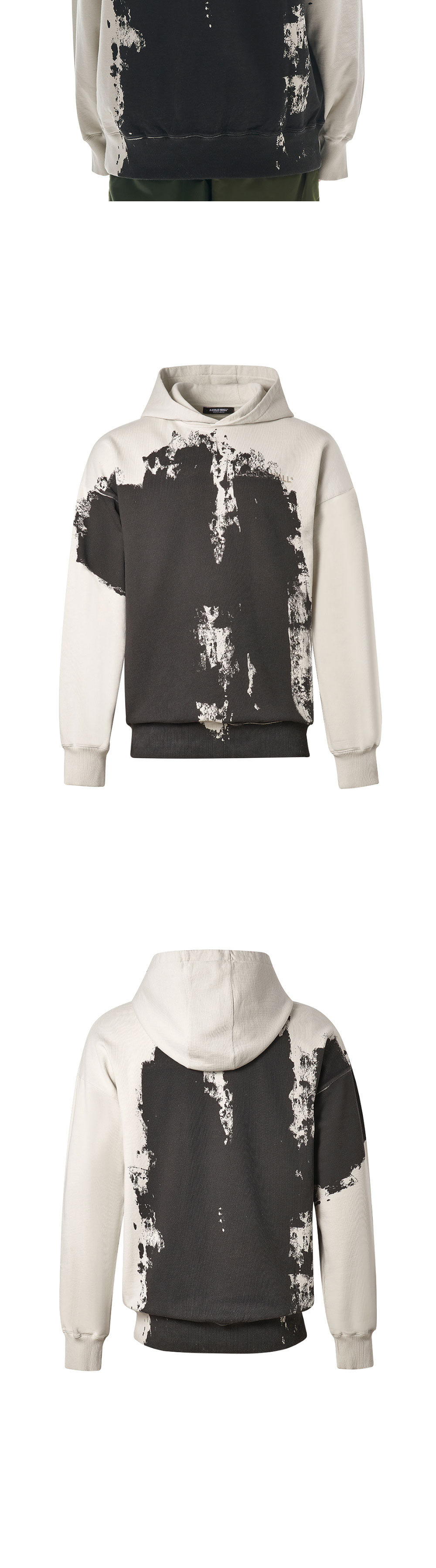 - 오버다이드 프린팅 후디 - 자수 로고 디테일 - 오버핏 실루엣