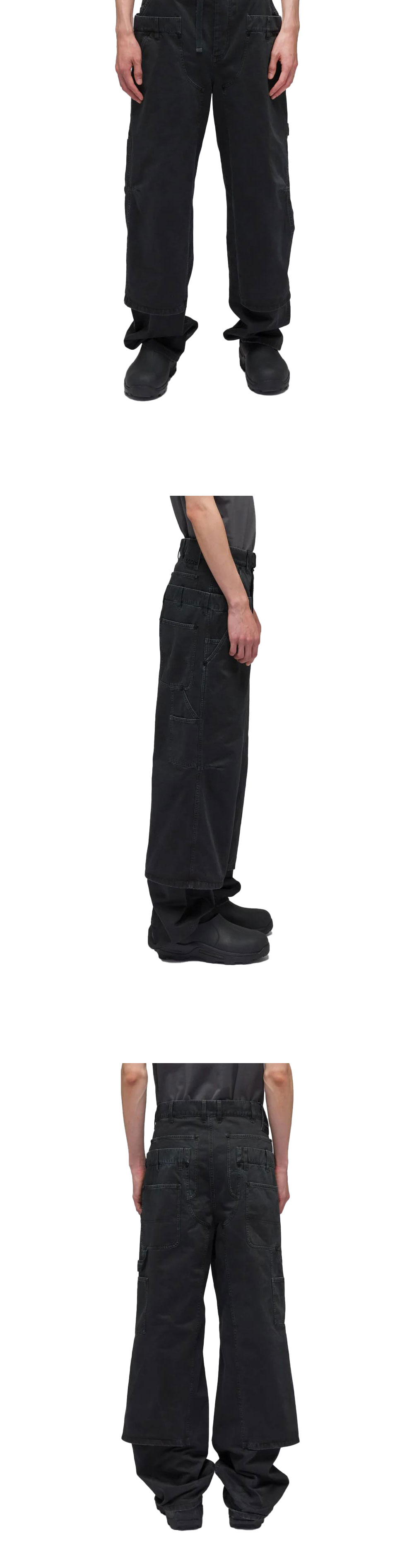 - 와이드 핏의 워크웨어 팬츠 - 마블 워싱된 코튼 소재 - 바지 밑단 더블 레이어드 디테일 - 허리조절 가능한 버클 클로저
