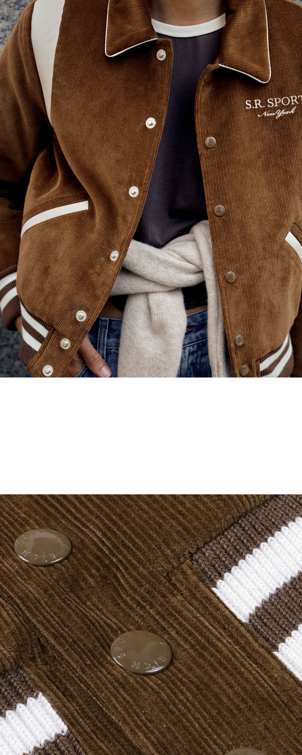 스포티 앤 리치 SR 스포츠 코듀로이 바시티 재킷 브라운