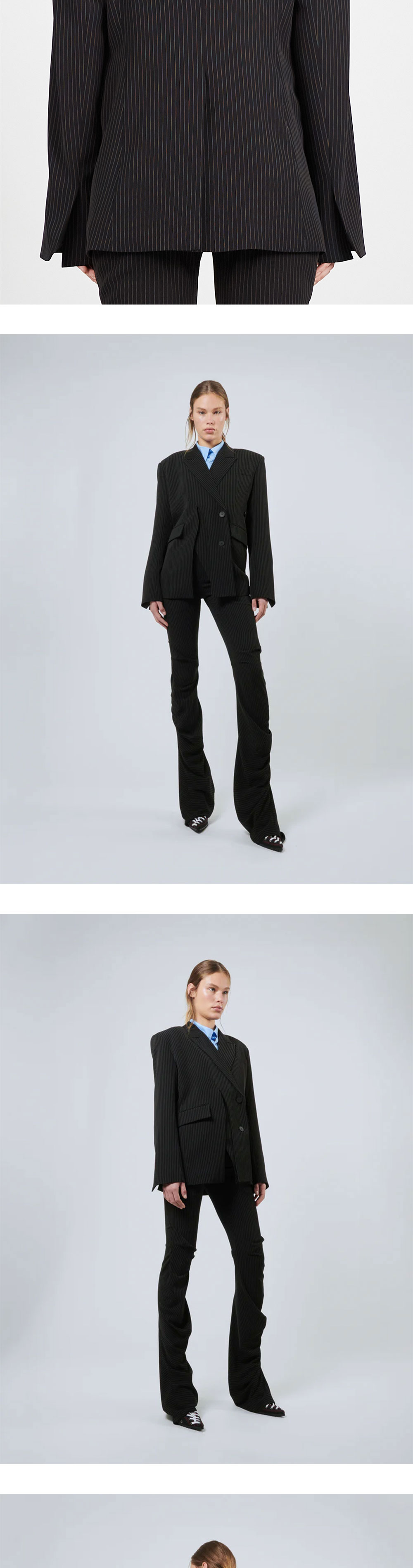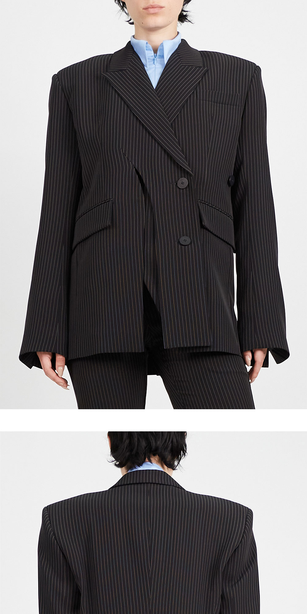 오토링거 우먼 시그니쳐 스플릿 블레이저 블랙 핀스트라이프