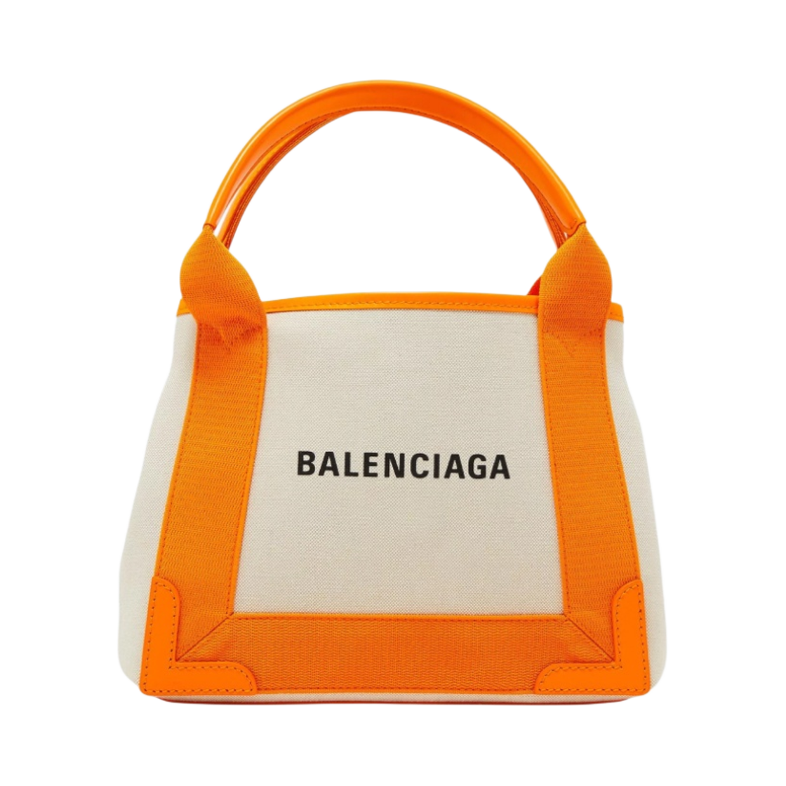 Balenciaga Navy Cabas XS Tote Bag Natural Pop Orange
