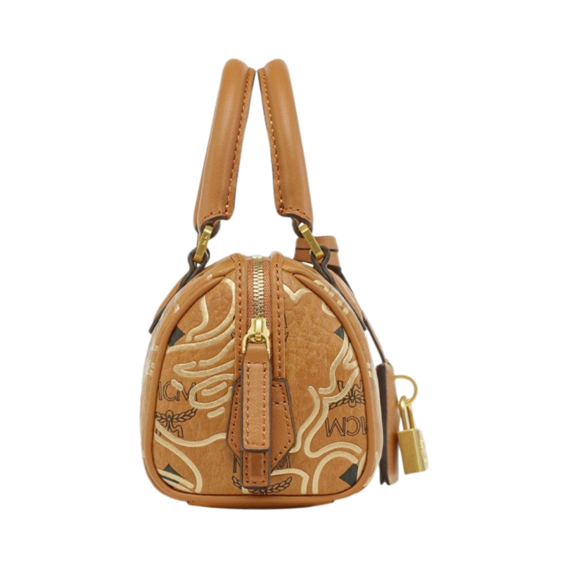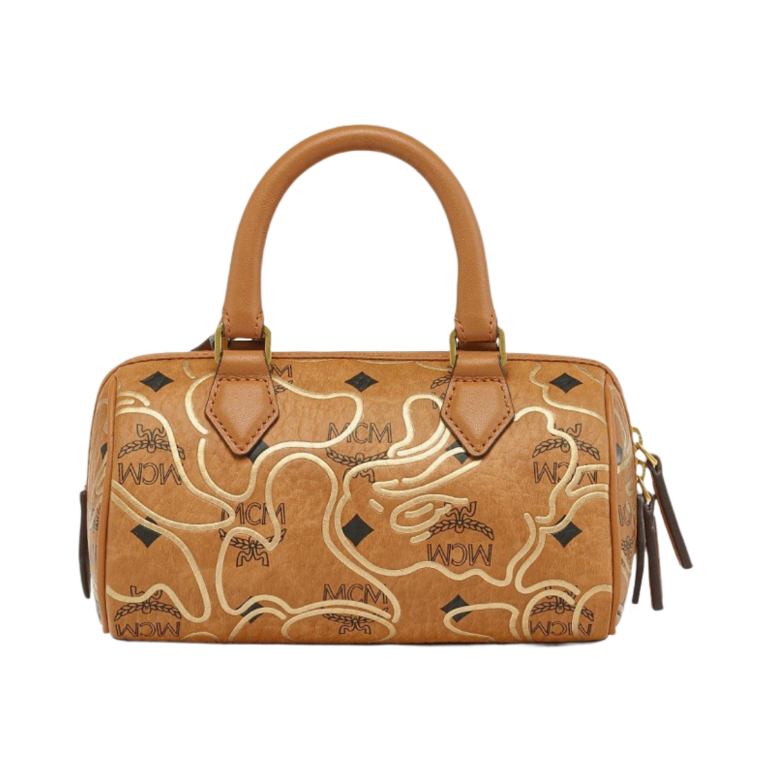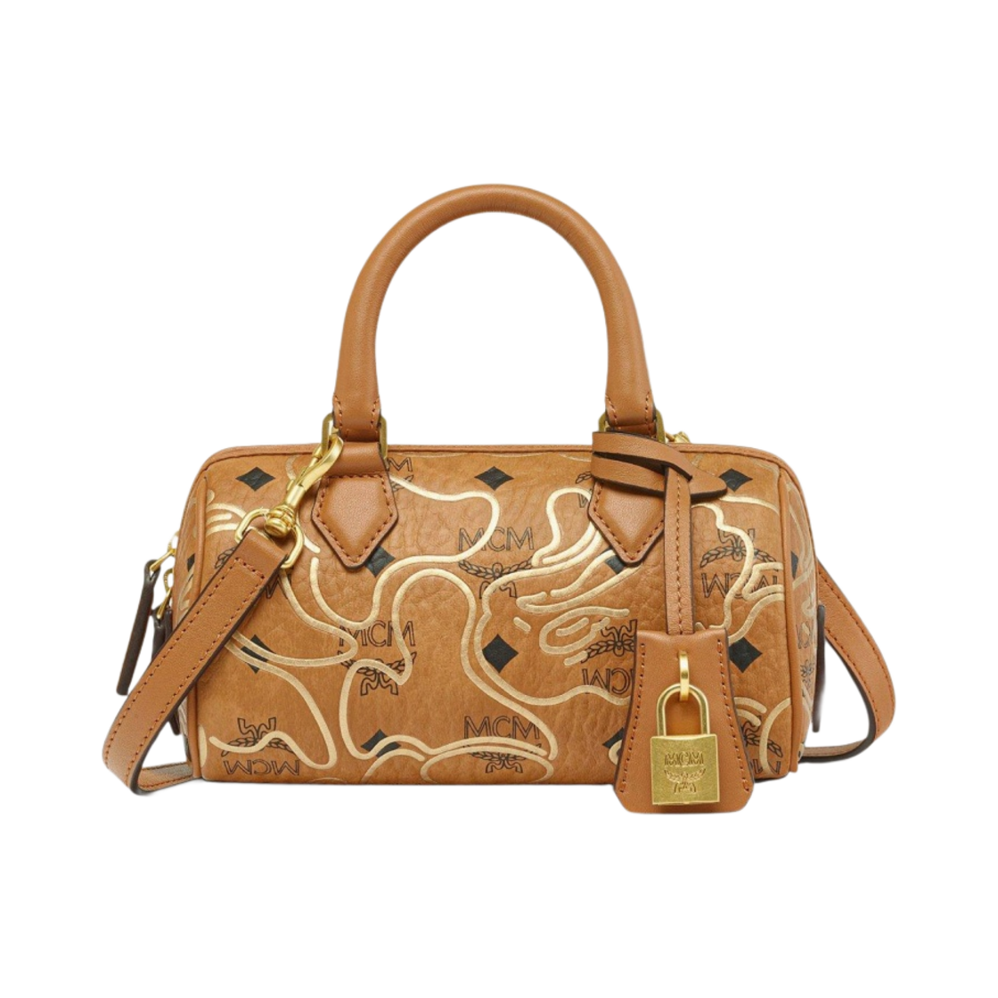 BAPE x MCM Ella Visetos Boston Bag Mini Cognac