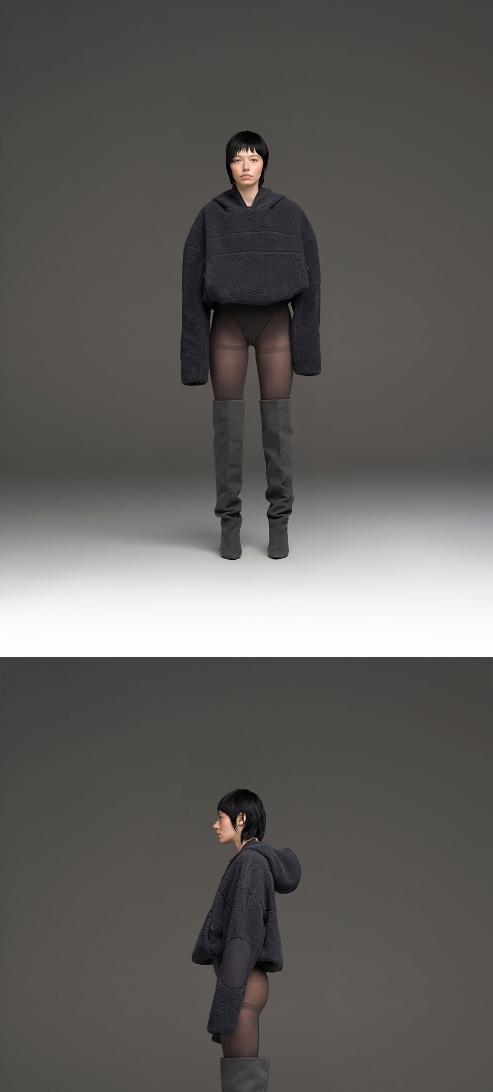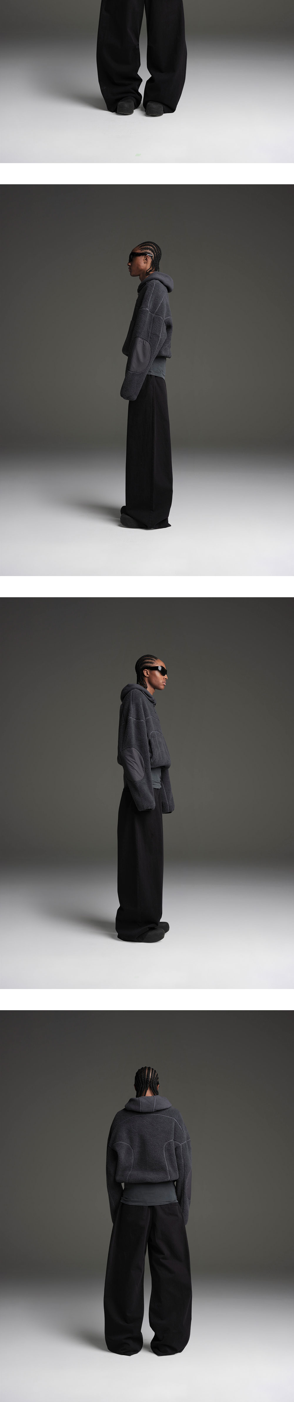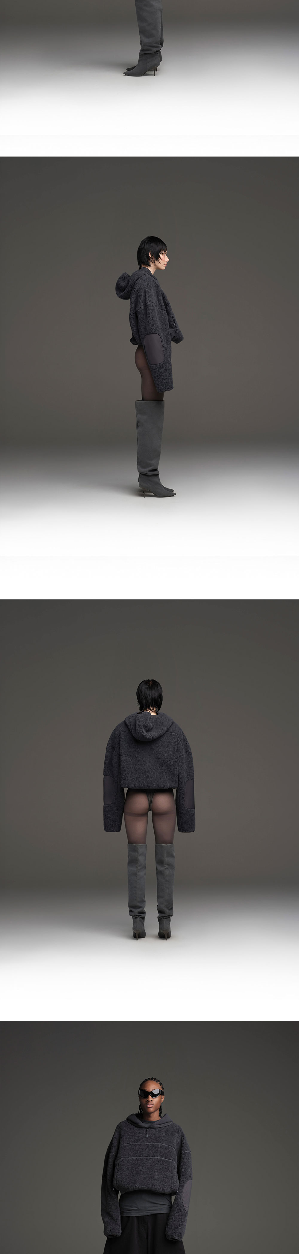 - 본디드 380gsm 100% 폴리에스터 셰르파 플리스 - 나일론 립스탑 팔꿈치 패치 - 허리 파우치 포켓 - 전면 지퍼 후드 잠금 - YKK 지퍼 - 패널 디테일