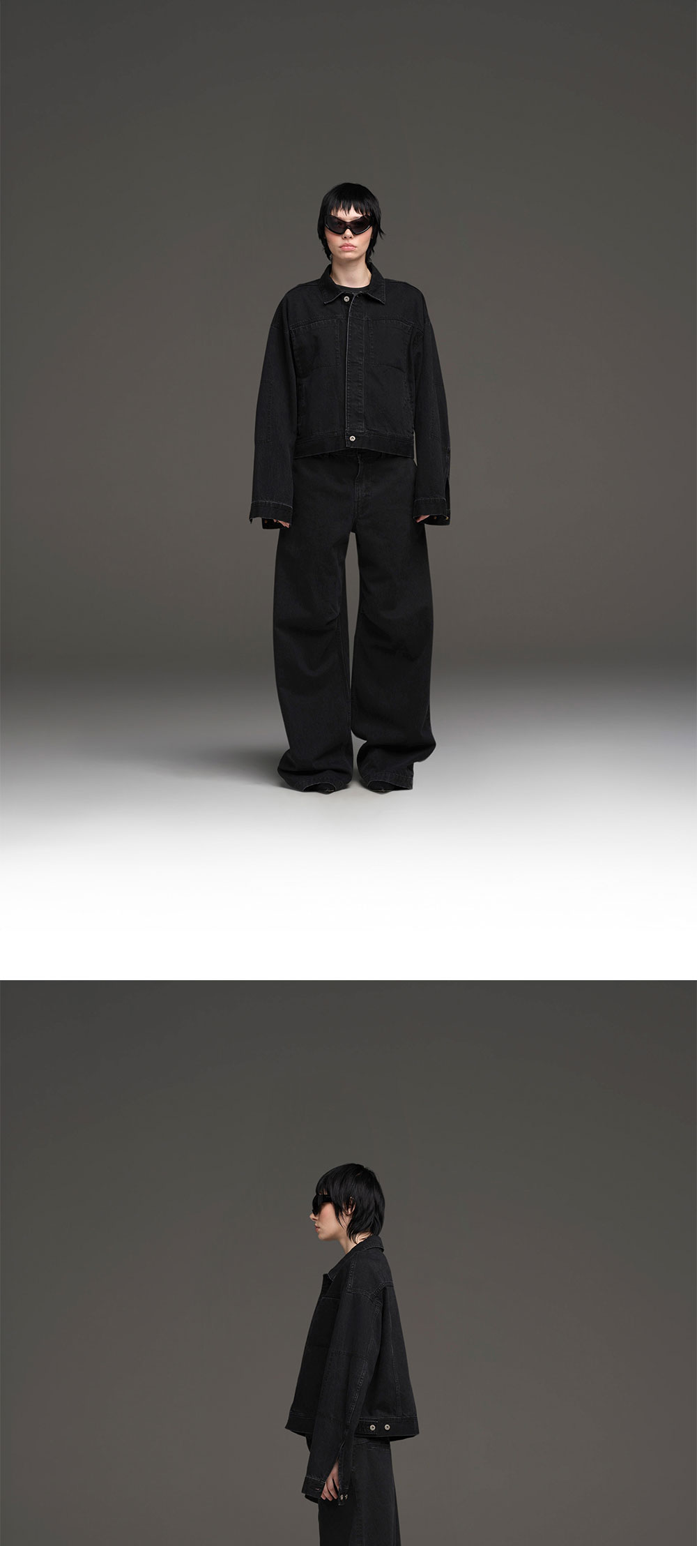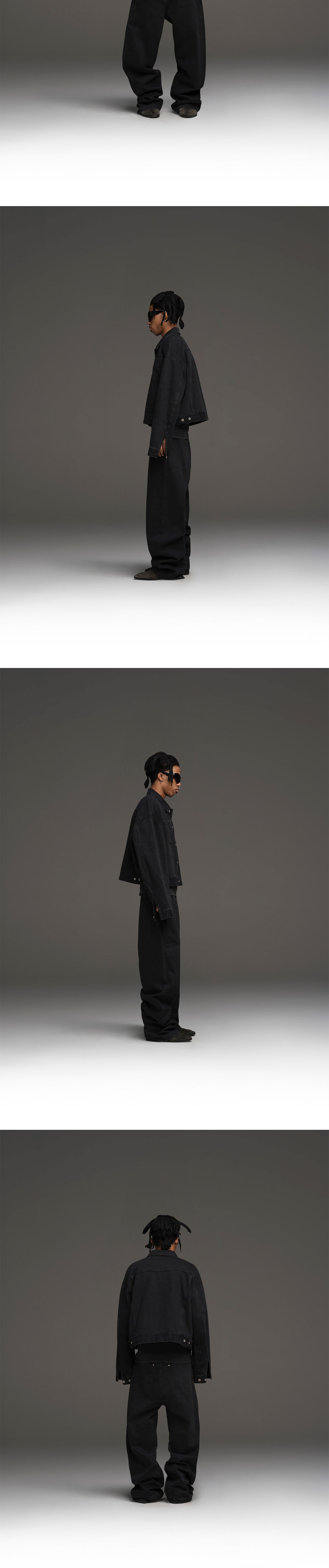 - 100% 면 일본 셀비지 데님 - 13.75oz - 허리 포켓 - 모토 패널 디테일 - YKK 금속 지퍼 - 스냅 돔 칼라 - 여유로운 핏