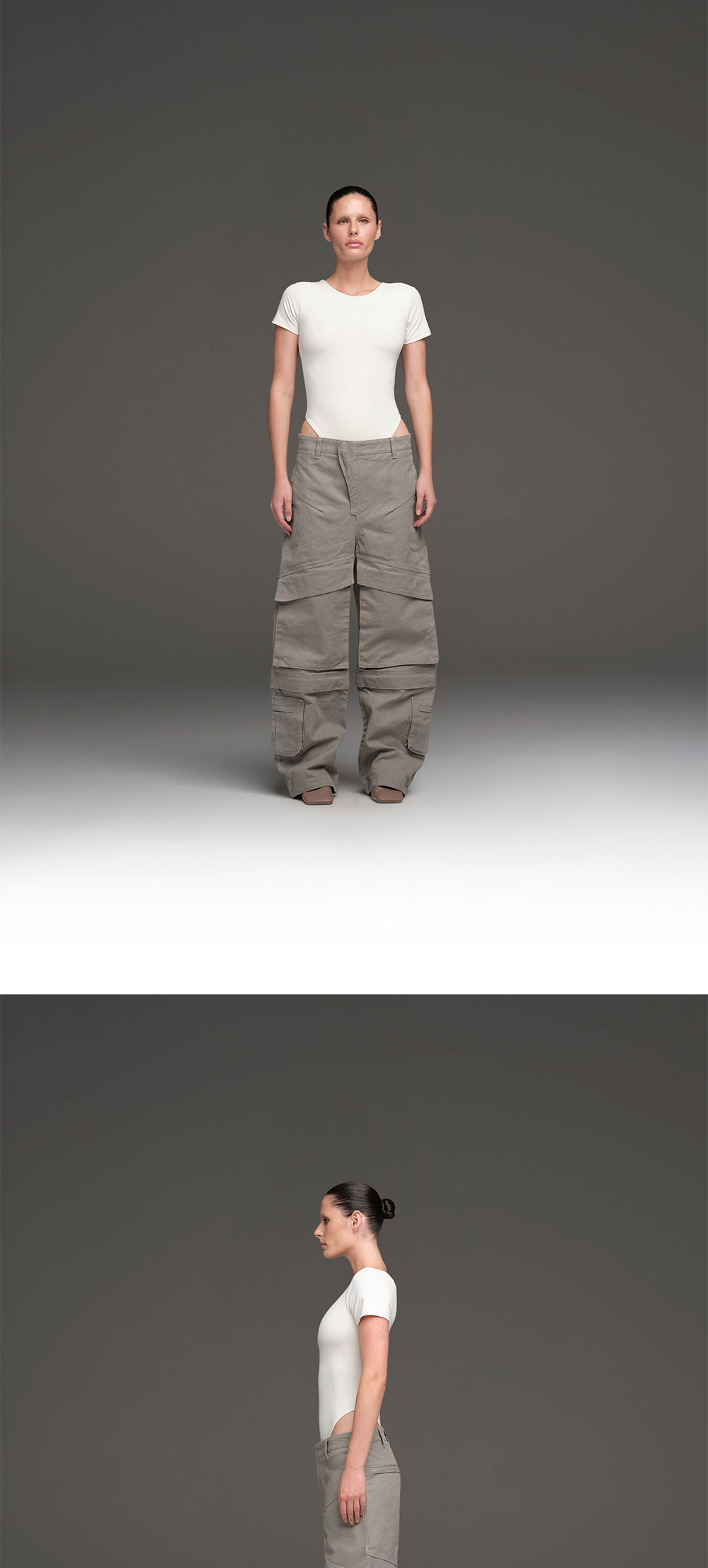 - 100% 면 헤비 캔버스 - 카고 포켓 디테일 - 반바지로 변환할 수 있는 다리 지퍼 - YKK 지퍼 - 와이드 핏 * 모델 1: 172cm, XS 사이즈 착용