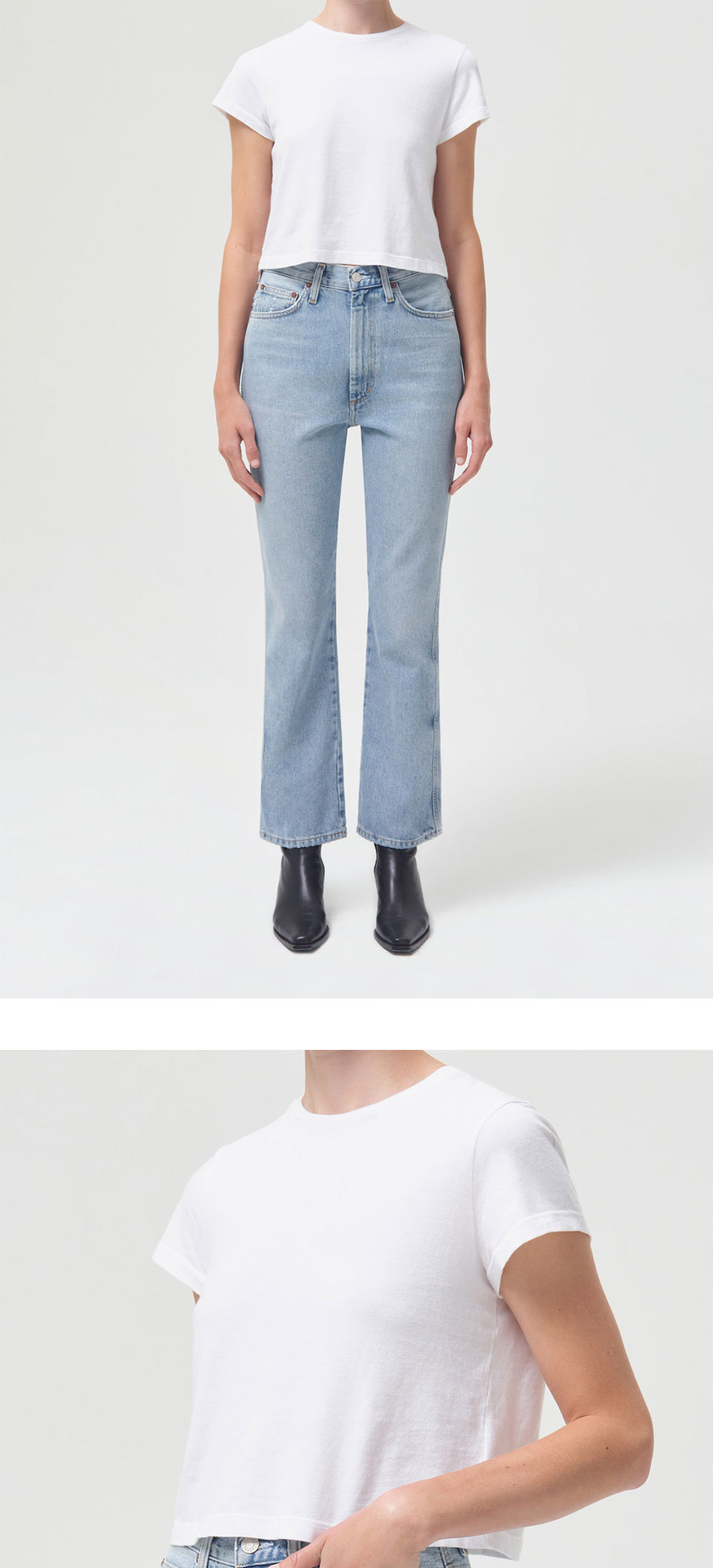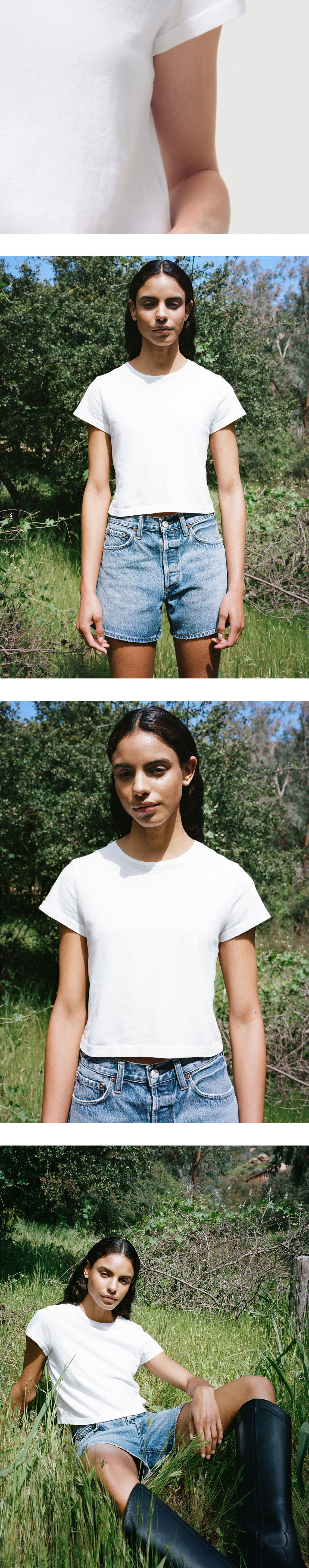 통기성이 좋고 굉장히 부드러운 오가닉 코튼(Organic Cotton)으로 만들어진 완벽한 크롭 티셔츠. 하이라이즈 팬츠나 청바지에 입는 것을 추천합니다. * 모델 : 177cm, S사이즈 착용