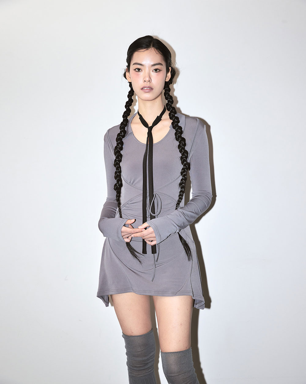 엘프엘프엘프 아카이브스 우먼 칼라 베스트 롱 티셔츠 시티그레이
