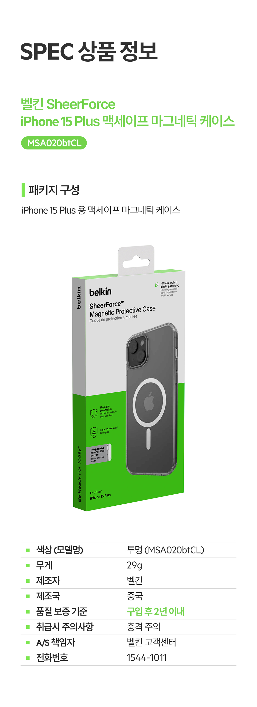 벨킨 아이폰15플러스 맥세이프 마그네틱 케이스 MSA020bt