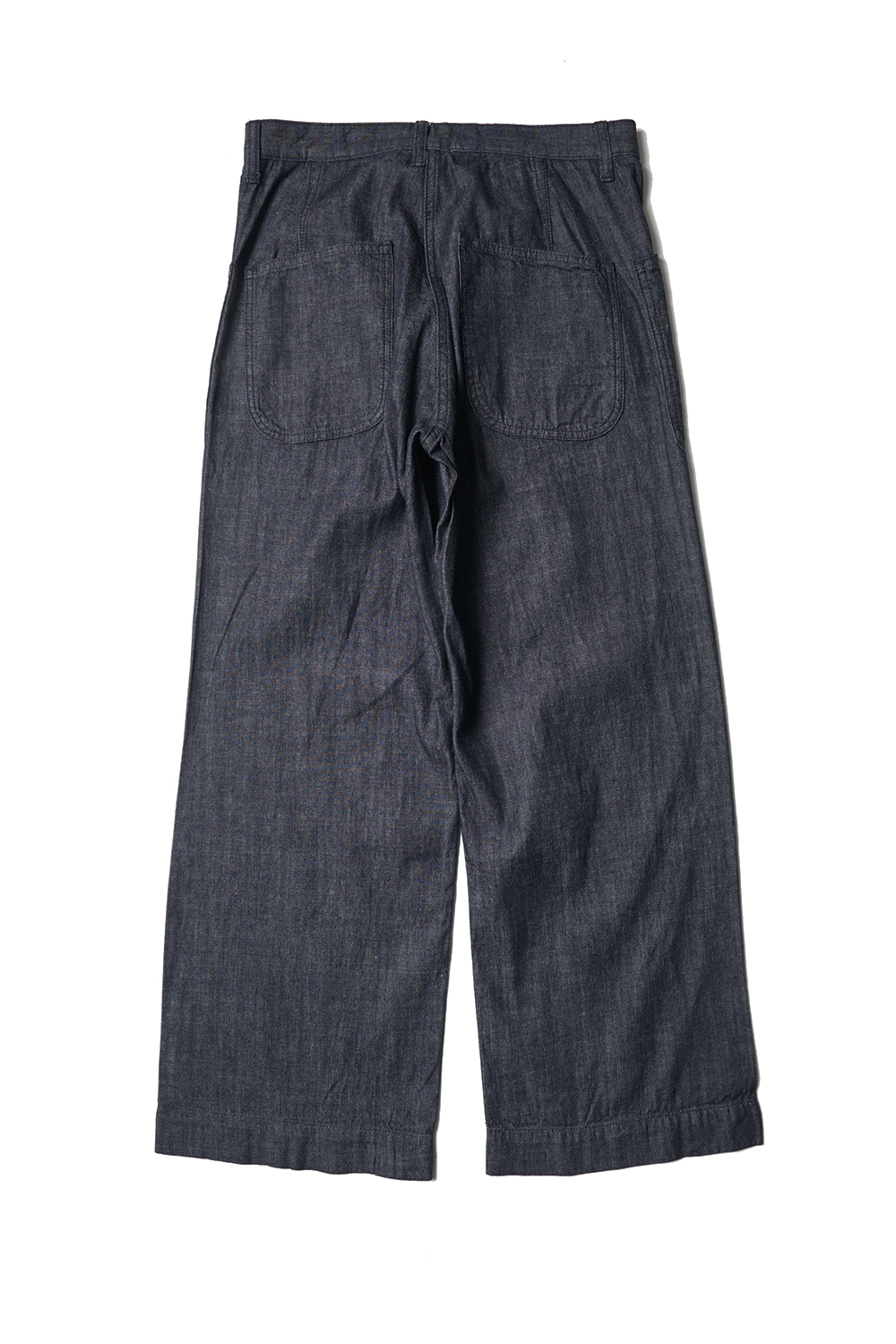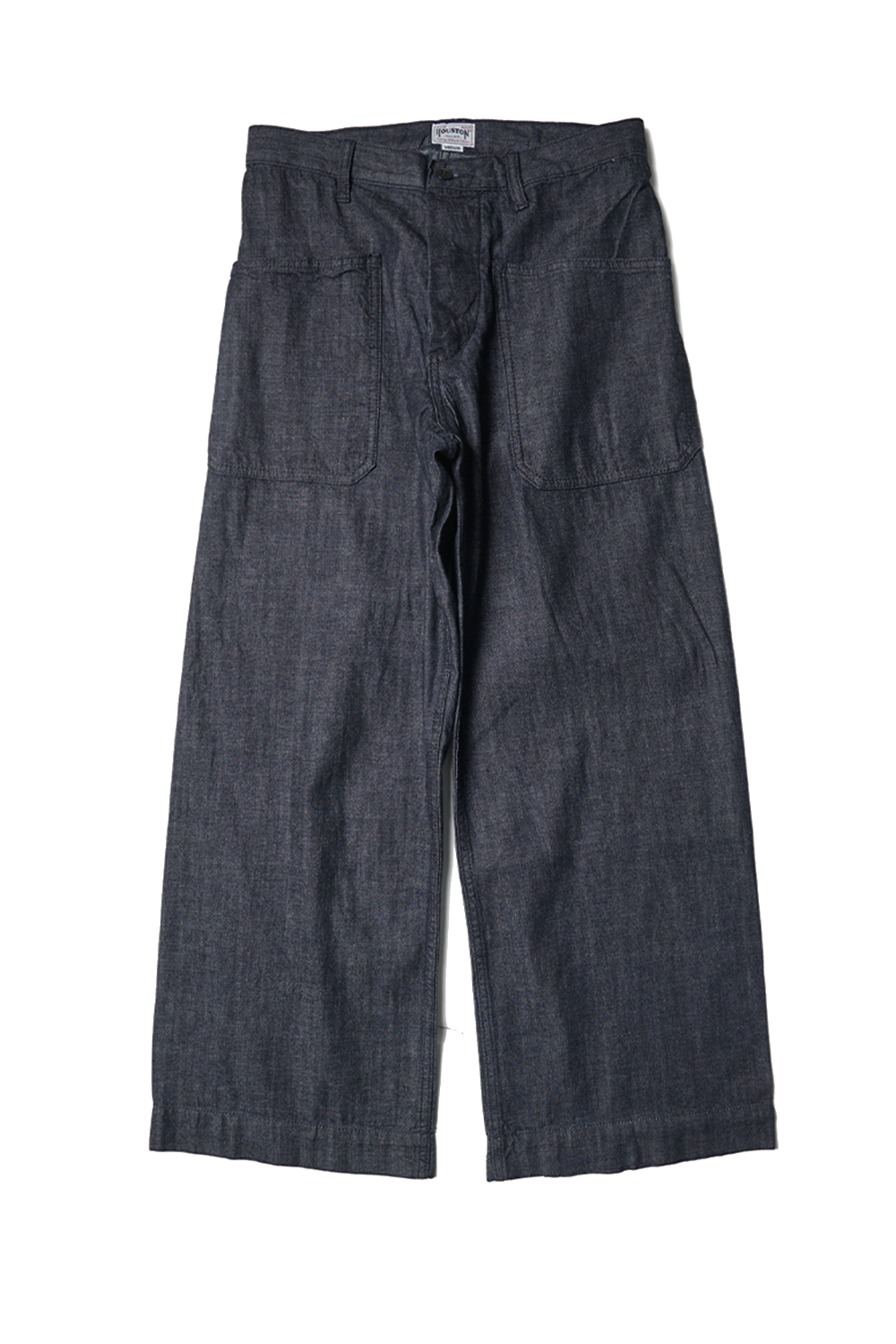Houston Japan 10079 USN Denim Sailor Pants - Ingido One Wash 오리지널 US 데님 코튼으로 제작된, 40년대 미해군 데님팬츠의 복각 아이템입니다. 봄, 여름용 팬츠로, 9oz의 원단으로 제작되어 부드러운 감촉과 가벼운 소재감이 특징입니다. 아웃심이 없으며 밑단까지 떨어지는 와이드한 실루엣으로 움직임에 용이합니다.