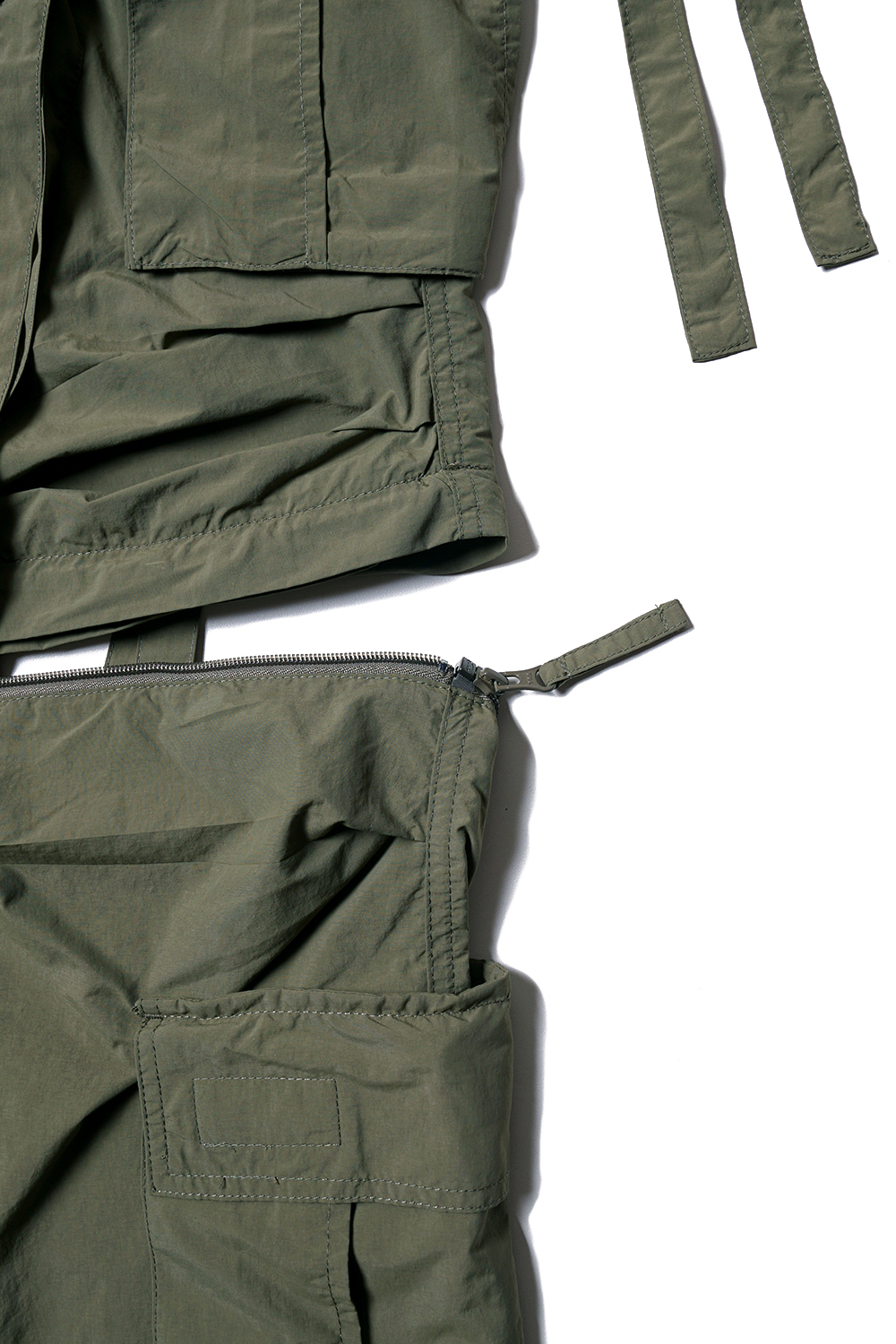 Houston Japan 10047 Nylon UK Techno Pants - Olive Drab 현재 입수하기 어려운 영국군의 테크노 팬츠를 베이스로 제작된 아이템입니다. 쇼츠로도 활용 가능한 2way 제품으로, 무수히 늘어진 스트랩과 와일드한 실루엣이 특징입니다. 고밀도 나일론 소재로 제작되었으며, 허리와 밑단은 드로우 코드로 조절 가능합니다. 8개의 플랩포켓은 벨크로 사양으로 개폐에 용이합니다. 무릎 부분에는 2개의 턱이 있어서 움직임에 자유로우며, 지퍼를 사용하여 팬츠에서 쇼츠로도 착용가능하여, 다양한 연출이 가능한 아이템입니다.