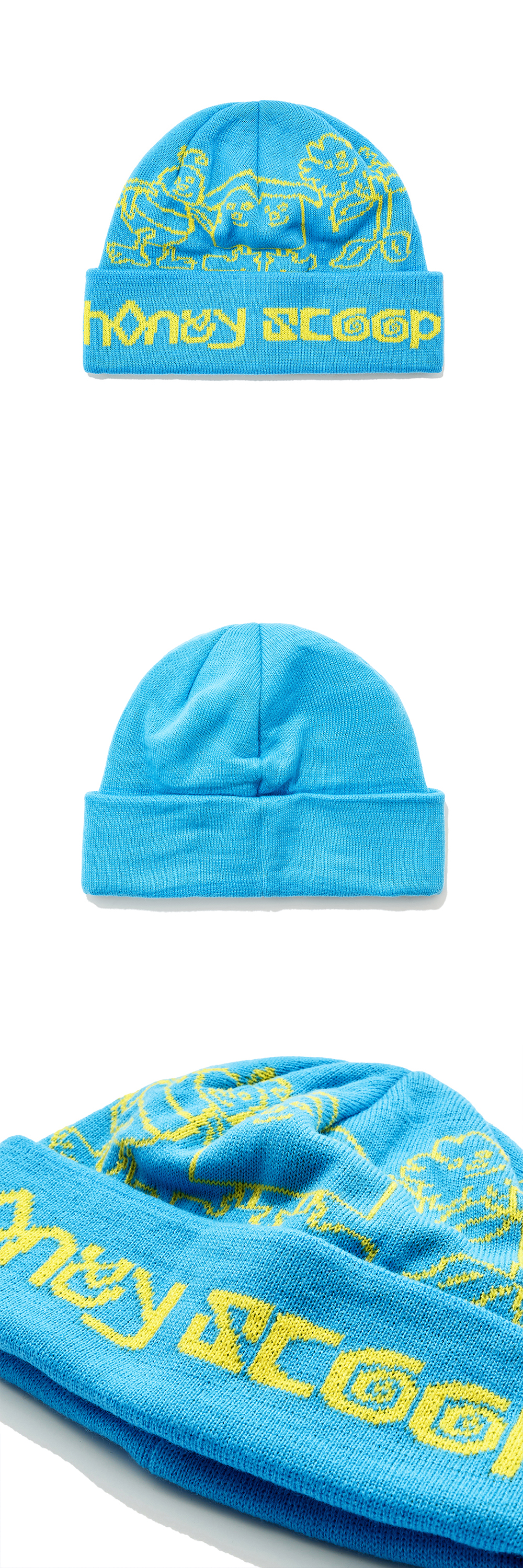 허니스쿱하우스 BHF 로고 커프 비니 블루