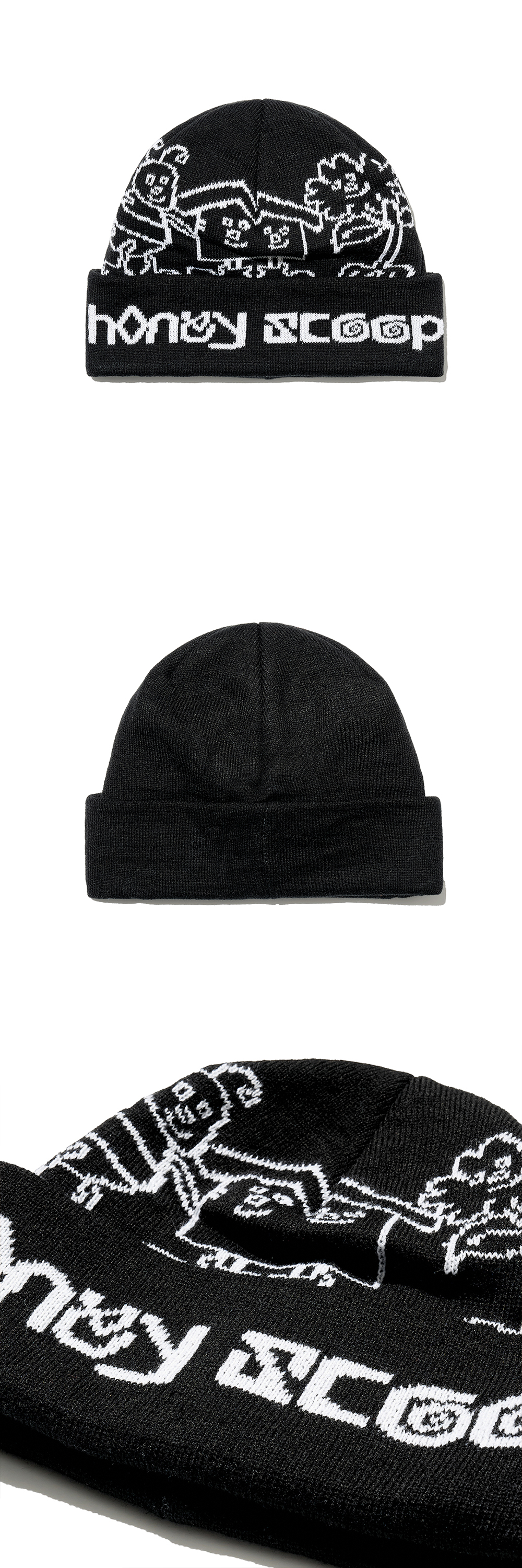 허니스쿱하우스 BHF 로고 커프 비니 블랙