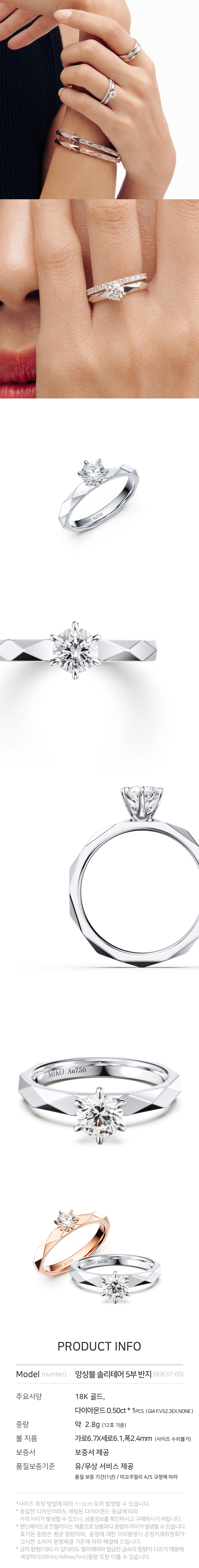 해당 상품 구입시 제작 및 출고에 영업일 기준 최대 14일이 소요됩니다. 언제나, 어디서나 동일한 가치를 인정받는 최상의 스톤만을 셀렉합니다. 미꼬의 스톤 전문가는 뉴욕, 홍콩, 인도, 일본, 벨기에 등 세계 각지에서 매일 소통하며 다이아몬드를 비롯한 스톤을 선택합니다. 3부이상 : GIA 다이아몬드 Only. 3부미만 : G/VS2/VG(별도표기 없을 시 기본등급) H/SI2/VG(일부 온라인 익스클루시브 제품, 제품명에 SI2 표기) 미꼬는 100% 핸드메이드로 외주공정이 아닌 독자적인 장인들의 공정운영으로 고객 한 분 만을 위한 주얼리입니다. 재고상품을 판매하는 것이 아닌 최상의 퀄리티를 가진 오더메이드 파인주얼리를 재공하고자하는 미꼬의 브랜드 규정입니다. 크림에서 판매되는 미꼬의 모든 주얼리는 18k Gold로 제작된 핸드메이드 파인주얼리입니다.