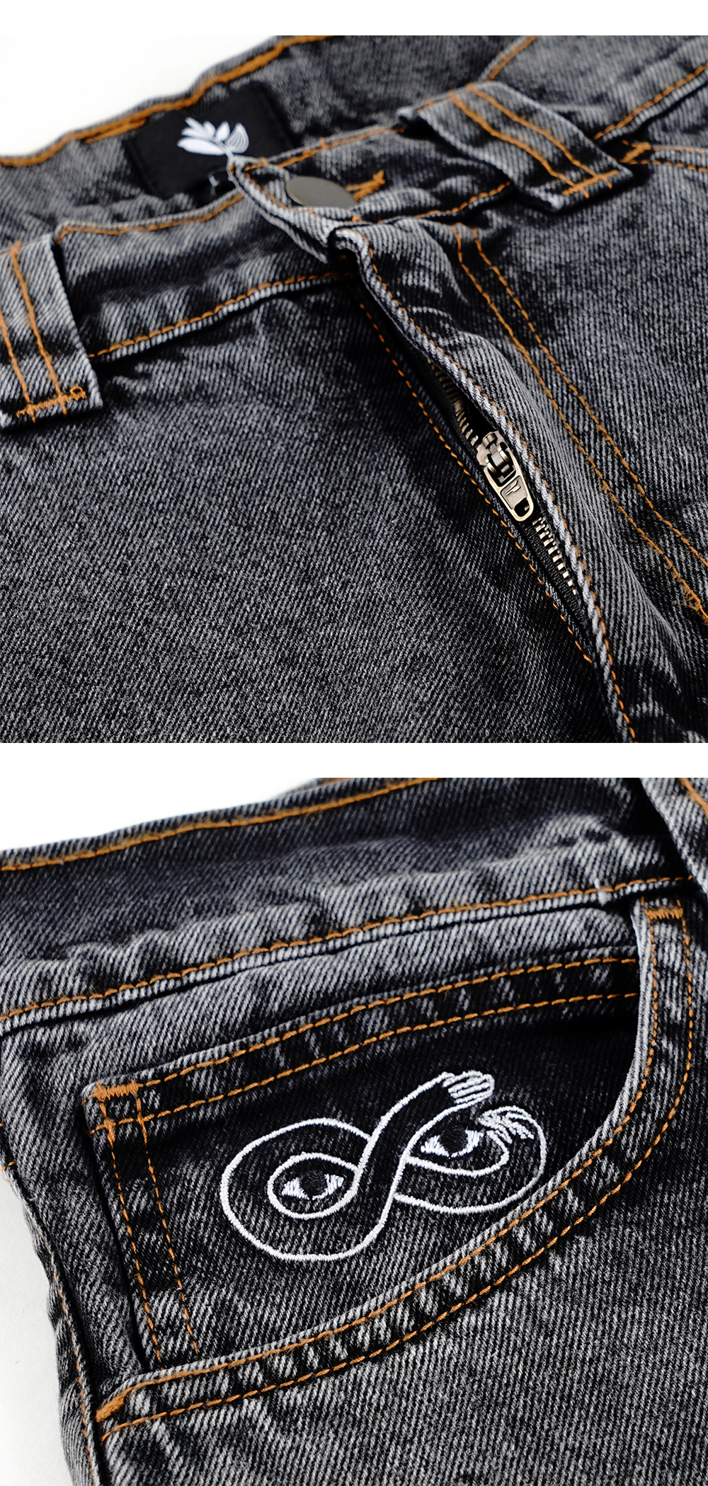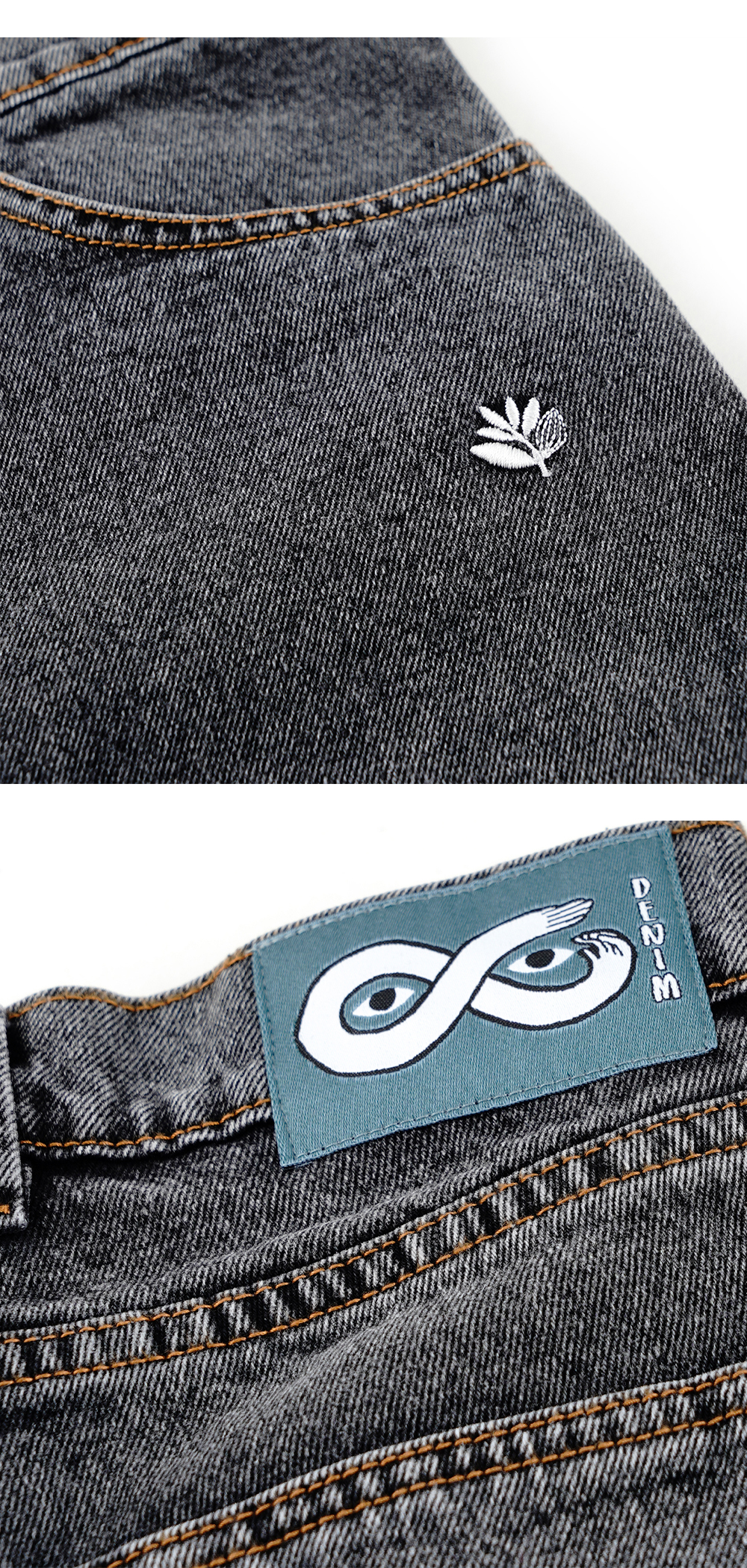 마젠타 스케이트보드 OG 팬츠 디스트레스드 블랙 데님
