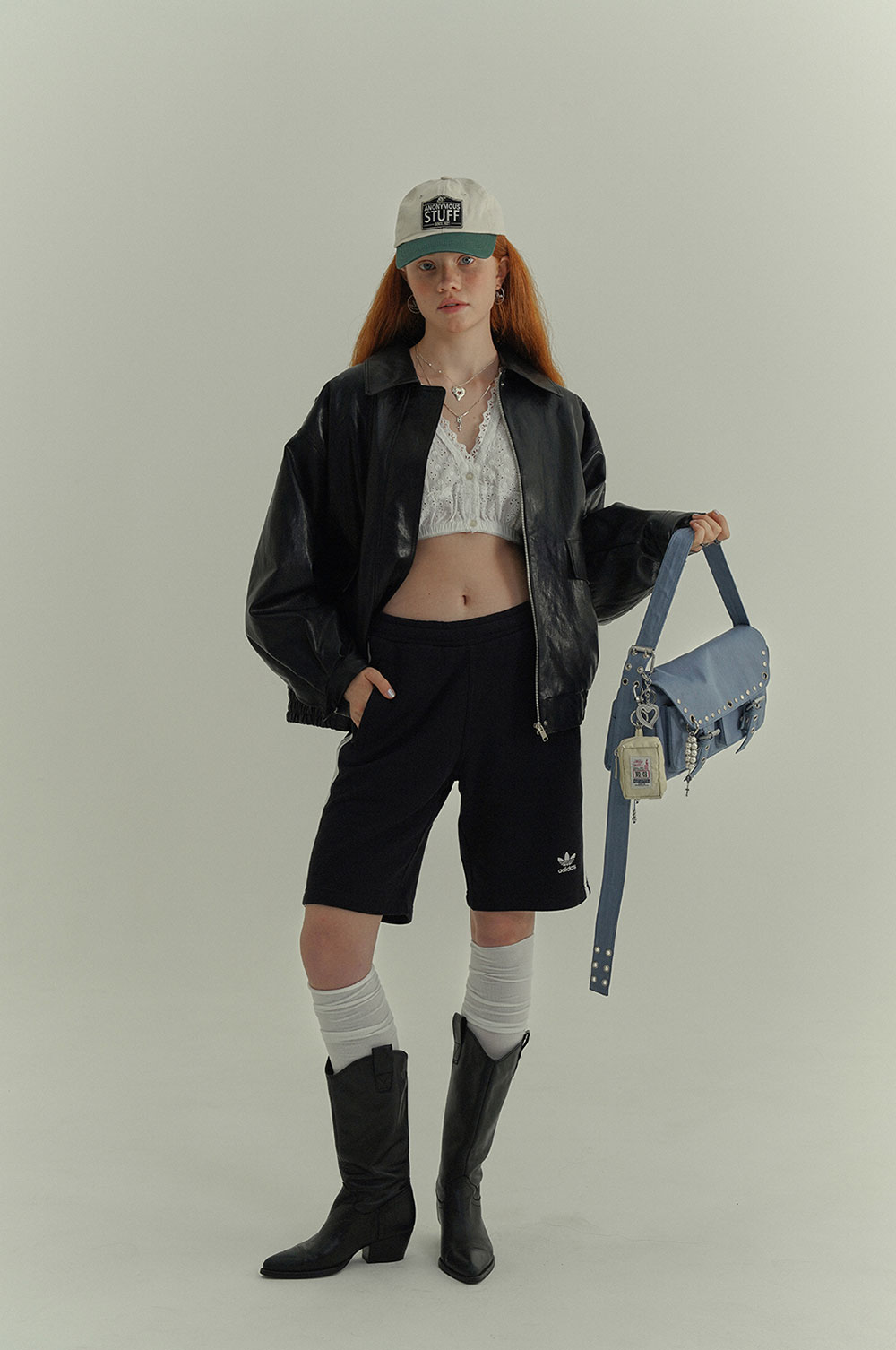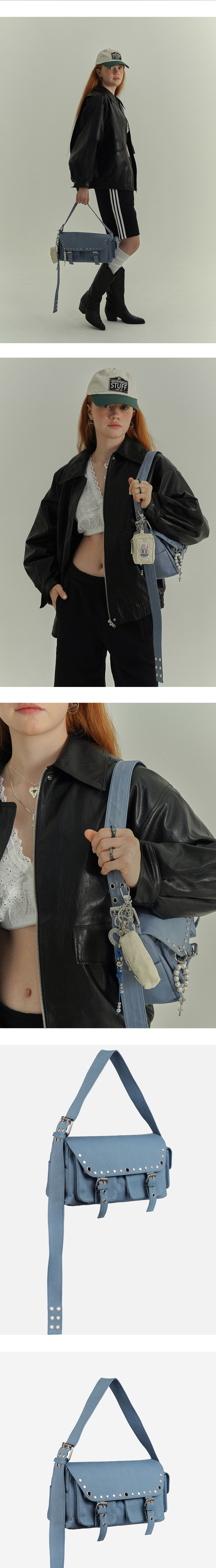 엔프프 포켓 스터드 숄더백 블루