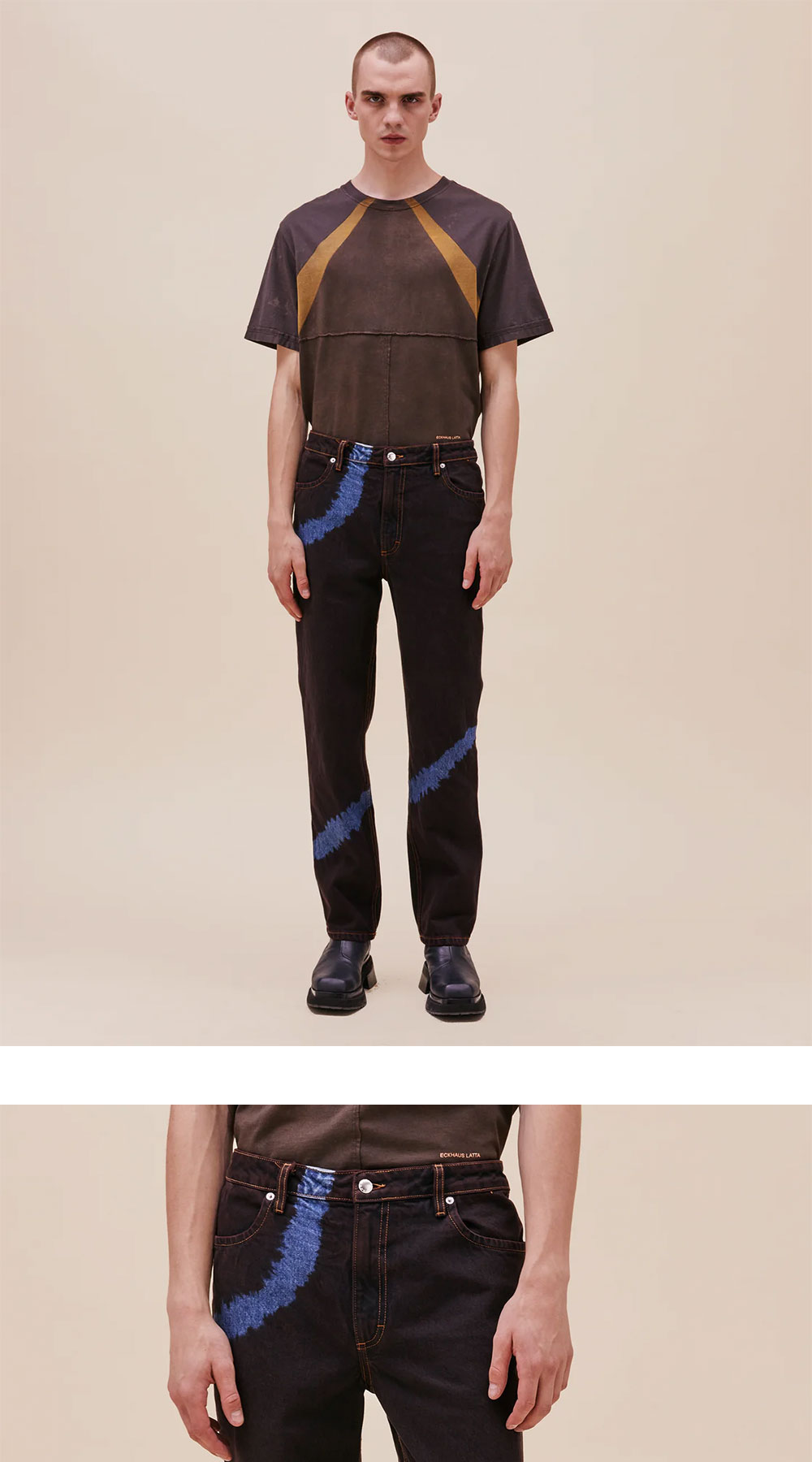 에크하우스 라타의 새로운 스트레이트 레그 진입니다. 낮은 허리선과 기존보다 업그레이드 된 핏이 특징입니다. - 브라운 염색된 팬츠에 로프 가공으로 독특한 디자인 연출 - 에크하우스 라타 트레이드마크 백 포켓 - 허리 밴드에 로고 버튼 - 니켈 지퍼 * 모델 착용 사이즈: 30