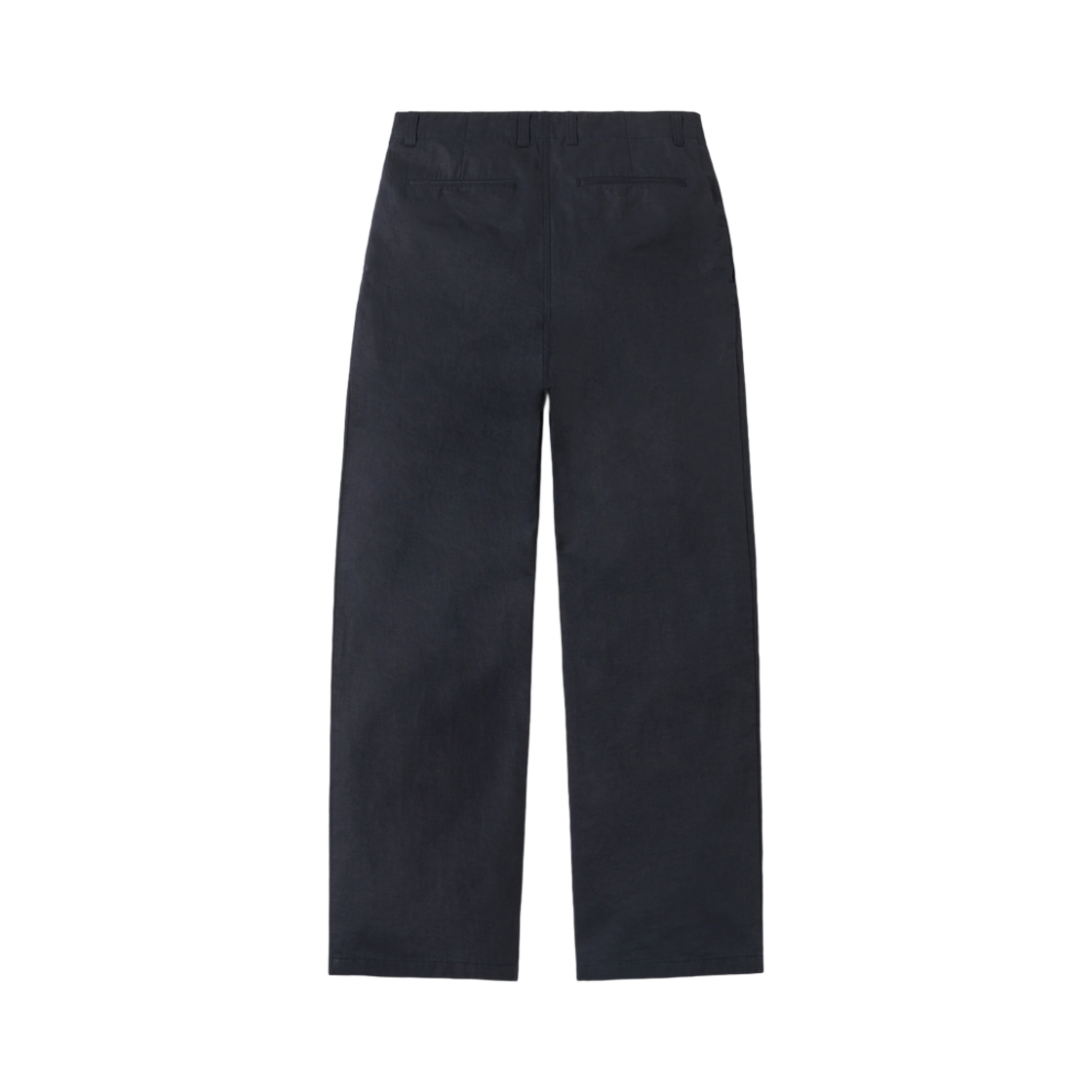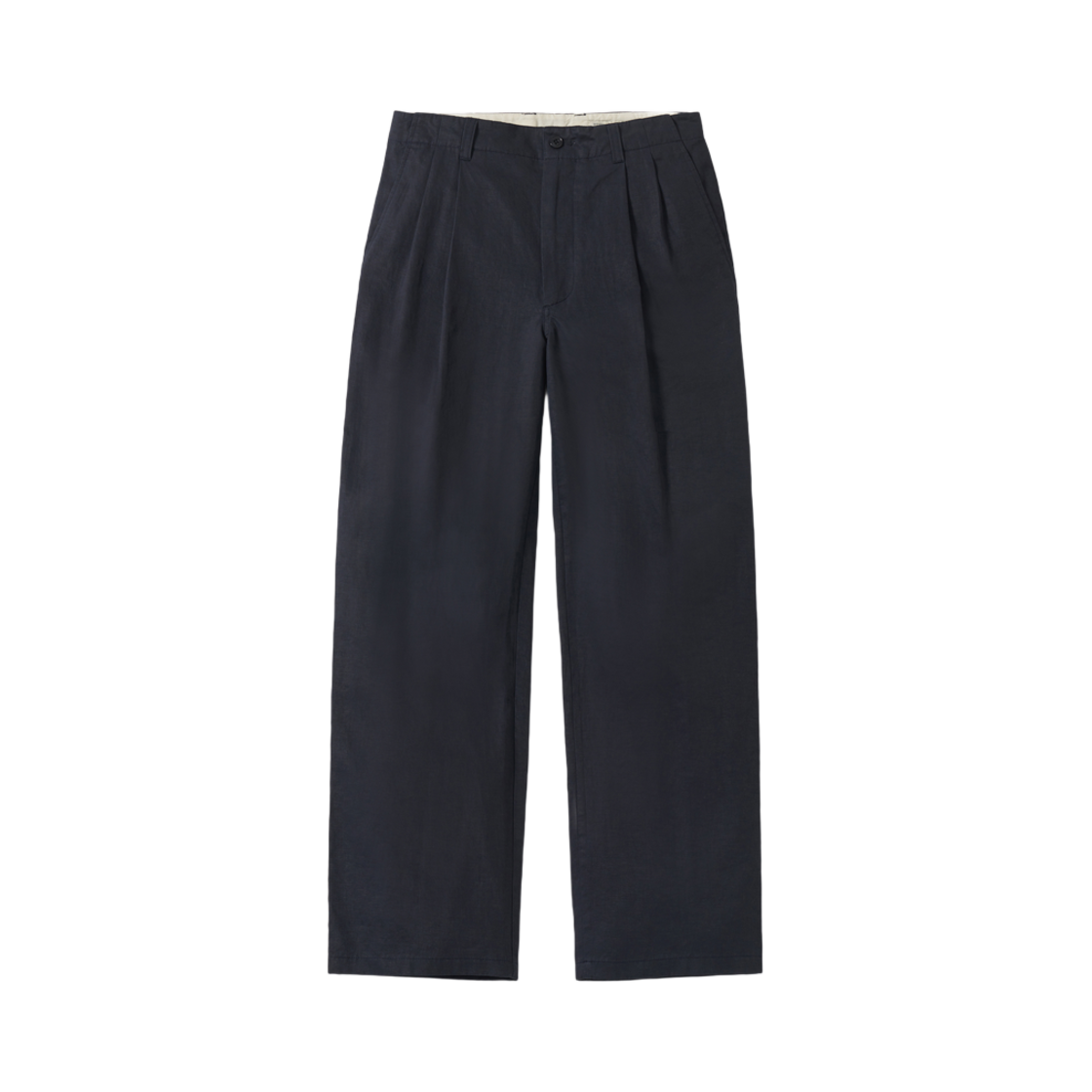 Pottery Two Pleated Wide Chino Pants CottonLinen Blend Twill Cloth Resilient Hard Finish Navy
