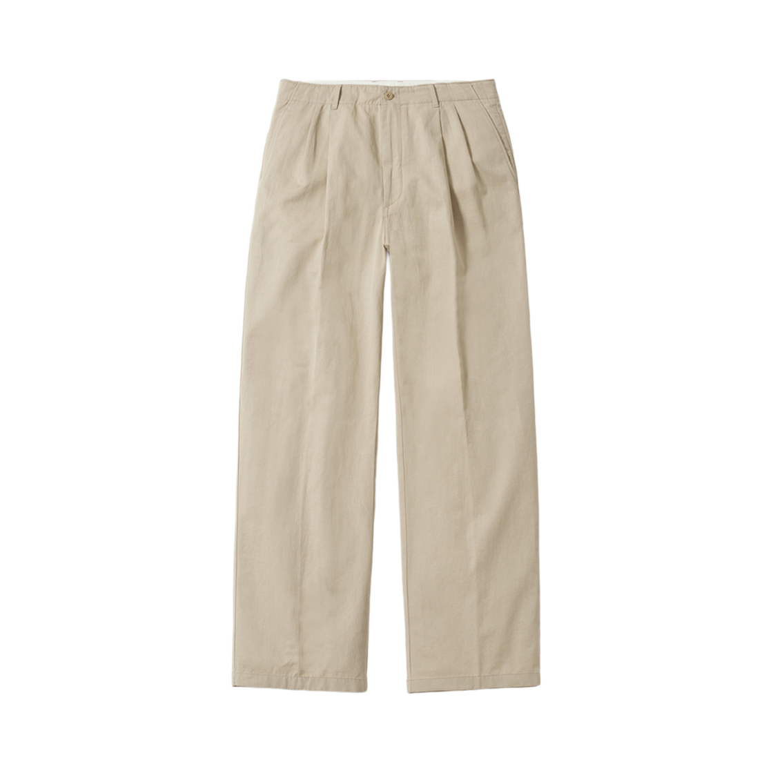 포터리 투 플리츠 와이드 치노 팬츠 코튼 리넨 블렌드 트윌 클로스 리질리언트 하드 피니쉬 라이트 베이지