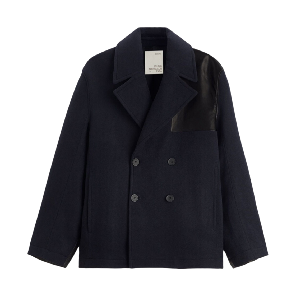 Zara x Studio Nicholson Leather Patch Pea coat Navy Blue